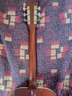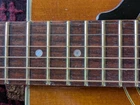 Great sounding guitar, loud with clarity, very good bass for a laminate top. An early model with a cedar top (from what it looks like and from what I read on the net). Also has V bracing instead of the typical X bracing, which I have only seen before on another early Aria orchestra model. Added Jescar gold EVO frets (harder than nichel silver) leveled crowned and polished. Slightly tapered the braces through the sound hole for more bass response. Slim neck, plays like an electric. Added a bone saddle and nut, ebony pins and filled the adjustable saddle slot with an ebony inlay. The original adjustable saddle comes with it. Added an Oak shim to increase saddle height and adjust action. Filled finish cracks with CA glue and wet sanded at least a third of the finish off to improve sound and remove most of the scratches. Looks great, plays great.