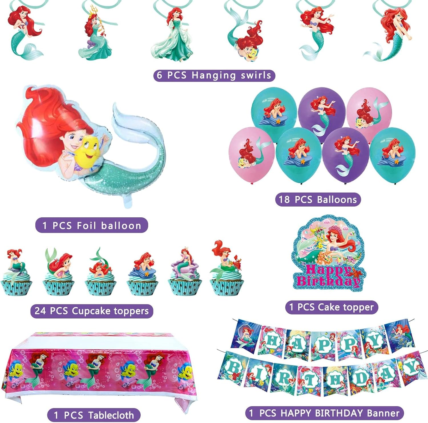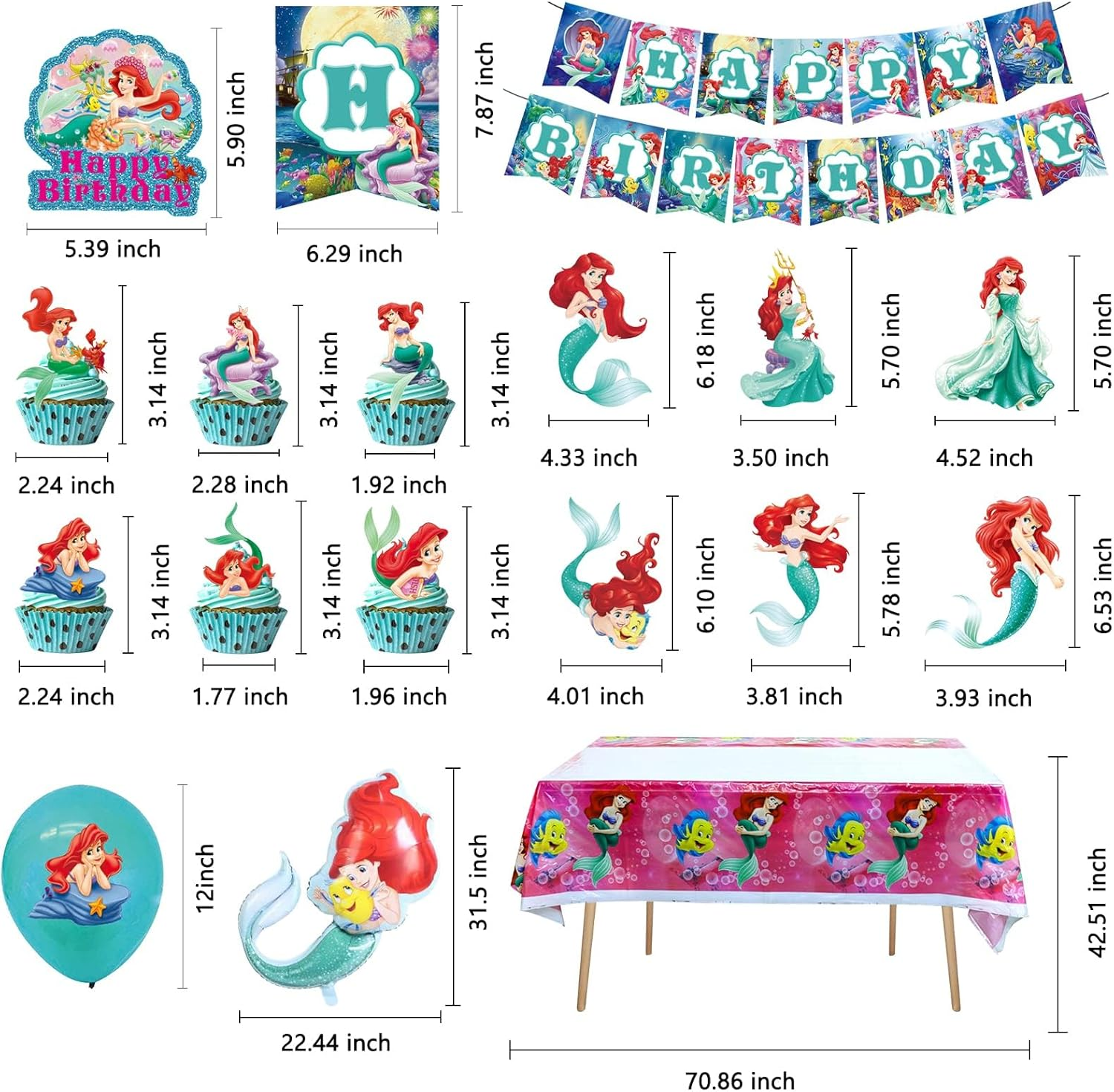 Store New Arrivals Add to Favorite View Feedback Contact Fast deliveries to the customer's home Quality customer service John Make the customers happy! Ariel Birthday Party Supplies, Party Decorations Set Include Banner, Tablecloth, Balloons, Hanging Swirls, Cake Cupcake Toppers for Girls Little Mermaid Party Decorations Description 【Package Includes】 This cute Little Mermaid party decorations kit includes 1pcs Happy Birthday Banner, 1pcs Ariel tablecloth, 1pcs Ariel foil balloon, 6pcs Hanging Swirls Ceiling, 1pcs Cake topper, 24pcs Cupcake toppers, 18pcs Latex Balloons(3style). It has everything you need for a Ariel themed birthday party. 【High Quality】 All of our Little Mermaid Birthday Party Supplies are made of high-quality materials, which are safe and non-toxic. The balloons made with natural latex, non-toxic. Every balloons have been rigorously tested and selected manually. EXTRA THICK, unlike ordinary balloons, the color is more full and not explosive, they are safe to be used for children. 【Unique Design】 The vivid print and vibrant colors of our Ariel party supplies set will create the most celebratory atmosphere for you and your guests. With its stylish design and cute characters, it's sure to be a hit with both kids and adults! 【Wide Application】 Our Little Mermaid Birthday Party Supplies kit are suitable for most events, such as Ariel themed party, dining, outdoor activities, can create an enjoyable and active atmosphere to these scenes. If you are going to throw a Little Mermaid party, the decorations kit make for fantastic decorations. 【Satisfaction】 If you are not satisfied with our products, please click the "seller contact" button in your Amazon account to send us an email, we will make you satisfied through exchange or refund as soon as possible. Ariel Birthday Party Supplies, Party Decorations Set Include Banner, Tablecloth, Balloons, Hanging Swirls, Cake Cupcake Toppers for Girls Little Mermaid Party Decorations Item model number omni-mryxt0228 Product Dimensions 7 x 6 x 0.5 inches Item Weight 9.6 ounces Manufacturer recommended age 16 years and up Included Components Birthday Party Supplies ABOUT US We offer the best prices around on high quality products. Our E-store includes media such as books, movies, music and games while offering electronics, toys, sporting apparel, clothing, tools, general home, garden items and more. SHIPPING We are always working hard to ensure your package arrives as soon as possible. Please understand that some factors like weather, high postal traffic, and the performance of shipping companies are outside of our control. We offer free shipping to the lower 48 states and ship within 2 business days of payment, usually sooner. We do not accept P.O. Boxes. Please provide a physical address. For shipping outside of the continental USA, we only use eBay's Global Shipping Program. The item is shipped to KY and then sent to the rest of the world. International customers are responsible for all duties and taxes. Continue to 'check out' to calculate costs for shipping the item to your country. Messages regarding eBay's Global Shipping Program MUST be directed at eBay EXCLUSIVELY. RETURNS We offer a 30-Day Return Policy on items in which you are not completely satisfied with. You have the option of a full-refund or an exchange of the item. No returns are available on items shipped outside of the USA PAYMENT We accept PayPal. CONTACT US This page content is yet to come Please ad us to your favorite seller and visit again later Thank You CUSTOMER SATISFACTION We try our very best to make sure every customer is completely satisfied. If there's a problem, message us! We're happy to help. WE ACCEPT