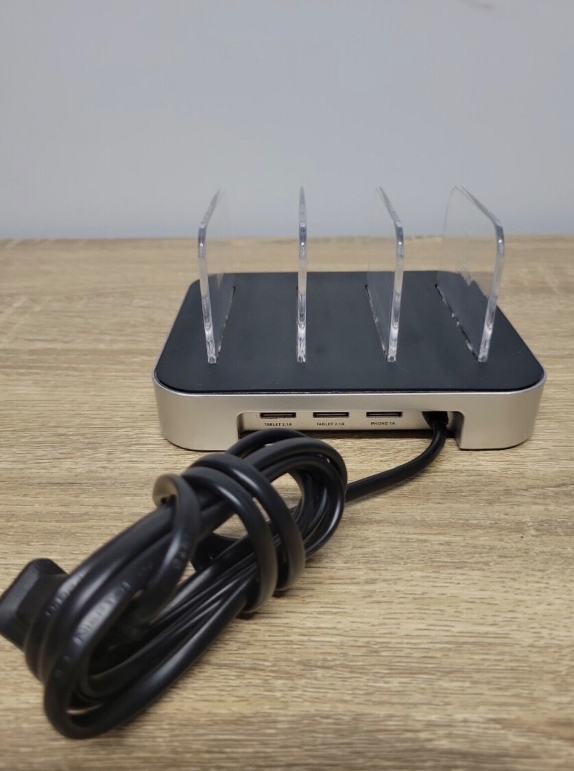 Fast Shipping! Atomi 3 USB Charging Docking Station Model AT740. Excellent Working Condition. Black and Silver. Charge your items fast. Details: *This item comes from a pet, smoke-free environment and climate controlled home. *Emails with questions are always welcome. *Seller accepts PAYPAL and most payment forms. Item ships promptly upon payment. *WE ARE PROUD OF OUR 100% POSITIVE CUSTOMER FEEDBACK RATING! *WE TRULY APPRECIATE YOUR BUSINESS!