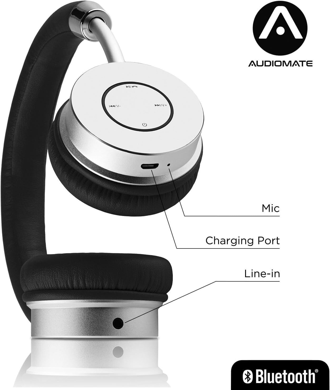 Audiomate BT905 Lightweight Wireless Bluetooth Stereo On-Ear Metal Headphones with Elegant HD Audio, Leatherette Ear Cups and 12 Hour Battery, Black SOUND REDEFINED Autiomate's BT905 Bluetooth Headphones offer advanced Hi-Fi audio engineering that produce a Crystal-clear balanced sound profile with deep rich bass and clear tones. HD HI-FI SPEAKERS 40mm Balanced speakers with a frequency response of 20-20,000 Hz and 32 OHM impedance brings your music to life in a way you have not heard before. ON EAR BLUETOOTH HEADPHONES Sleek and modern professional look. Metal housing, metal hinges and rotating ear-cups allow headphones to be positioned to create an isolated listening chamber for pure sound representation. CUSHION COMFORT Supple, ultra-soft leatherette ear-cups and headband make wearing your 6oz Audiomate headphones extraordinarily comfortable. Hours of playback and phone calls are virtually fatigue free. BUILT-IN MIC WITH CONTROLS A built-in microphone clearly represents your voice so your calls are as clear as they would be with your phone. Controls allow you to Answer/end phone calls, adjust volume and select tracks. Stylish and comfortable, the BT905 Wireless Bluetooth Headphones sport a lightweight metal design with maximized versatility. Freeing you from wires, your Audiomate BT905s provide a crystal clear Bluetooth 4.0 playback signal and uninterrupted hands-free calls. Packed with convenient features, the deceivingly simple design includes enhanced bass, built-in controls and a large extended play time 300mAh battery. For added comfort, a ultra-soft leather adjustable ear-cups and headband has been implemented with a form fit flexibility. The 40mm stereo speakers, housed in exceptionally supple leather ear-pads, allow you to easily wear your Audiomate's for hours at a time, fatigue-free. Because the ear-pads rotate, a contoured, custom fit is assured every time you wear them. The cleverly designed on-board control panel allows you to quickly switch tracks, pause/start music, change volume and answer calls. With the intuitive button placement, you won't need to take the headphones off in order to make all the necessary adjustments. No need to impede your listening with annoying and complicated clicking. Sound-wise, a 20Hz-20kHz frequency response and impedance of 32 ohms carries a punch for a surprisingly powerful delivery of a well-balanced audio signal. Audiomates will surprise you with the clarity and dynamics they produce. Experience quality sound with the freedom to move. Specifications Plays From: Bluetooth 4.0 or optional 3.5mm jack Housing: Metal Ear-cups: Leather Working Range: 32 ft. Speaker Size: 40mm Frequency Range: 20-20,000Hz Impedance: 32 Battery: 300mAh (10-12 hours of playback) Charging Cable: Micro USB Weight: 6oz. Items Included Audiomate BT905 Headphones Audiomate Padded Mesh Storage Bag Audiomate Micro USB Cable Audiomate Manual Audiomate 1-Year Warranty. Shipping We offer FREE shipping on all orders! We ship within Three business days of payment, usually sooner. We use a selection of shipping services such as UPS, FedEx, USPS etc. We only ship to the lower 48 states, no APO/FPO addresses or PO Boxes allowed. Local pickups and combined shipping options are not provided at this time. Return You can return a product for up to 30 days from the date you purchased it. Any product you return must be in the same condition you received it and in the original packaging. Please keep the receipt. Payment We accept payment by any of the following methods: PayPal Please pay as soon as possible after winning an auction, as that will allow us to post your item to you sooner! Feedback Customer satisfaction is very important to us. If you have any problem with your order, please contact us and we will do our best to make you satisfied. Contact Us If you have any queries, please contact us via ebay. We usually respond within 24 hours on weekdays. Please visit our eBay store to check out other items for sale! Thank you for shopping at our store.