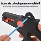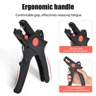 Product Features: 1. Easy to strip, durable; no damage to the wire core, long life. 2. For individual plastic or rubber insulation, several 0.08-4mm² cables and stripping. 3. The stripping diameter of different wire segments can be set automatically. 4. Equipped with copper wire and aluminum wire cutters, multi-strand maximum 4mm². 5. With easily replaceable blades, plastic jaws and length stoppers. 6. Shockproof fiberglass and plastic body. Parameters: Product Name: D5 Series Wire Strippers Material: High Carbon Steel + Plastic FSE-D5 Stripping Range: 0.5-6.0mm² FSE-D5Y Stripping Range: 0.5-10.0mm² AWG: 22-10AWG Product Weight: 180g Package Included: Wire Stripper * 1