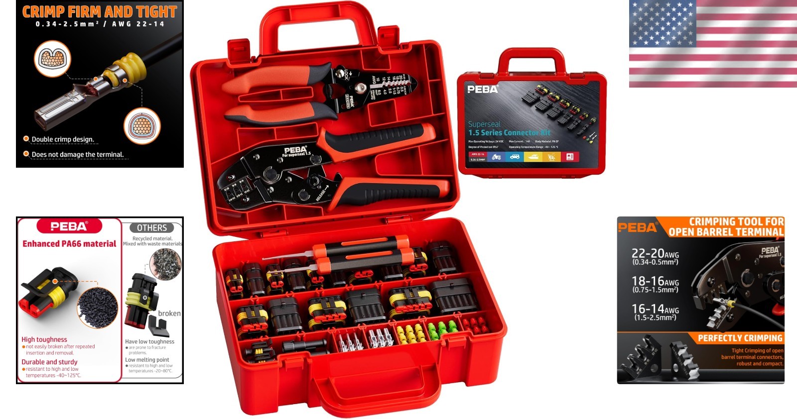 Automotive Waterproof Electrical Connectors Kit 1-6 Pin Wire Crimper Tool Set ‹ › ‹ › ‹ › ‹ › ‹ › ‹ › ‹ › ‹ › ‹ › ‹ › ‹ › Automotive Waterproof Electrical Connectors Kit 1-6 Pin Wire Crimper Tool Set Comprehensive Tool Set: Includes crimping pliers, wire stripper, and waterproof connectors ranging from 1 to 6 pins (both male & female terminals). Features 3 sizes of Rubber Cable Seals and 2 terminal removal tools - all organized in a compact, user-friendly box. Ideal for automotive repairs, marine wire connectors, or various electrical tasks. Ensures quick access to tools and hassle-free storage for your convenience. Precision Crimping Design: Equipped with professional-grade crimping dies and a ratchet mechanism for stable, high-quality crimping results. Adjustable pressure design for AMP SUPERSEAL 1.5mm series terminals pin and wires of 22-14 AWG (0.34-2.5 mm²). Quick-release lever enhances workflow and operational efficiency. Strong, Uniform Crimps: Features dual crimping stations that secure wire conductors and insulation simultaneously, ensuring robust and consistent connections. Automatic ratcheting system allows for full-cycle crimps without guesswork—perfect for precision-required repetitive tasks. The ratcheting design guarantees durability and reliability in crimping. Resistant Connectors: Weatherproof connectors constructed from PA66 nylon provide waterproof protection. This material boasts excellent thermostability, ensuring durability and resistance to wear. Designed to withstand repeated insertion and removal cycles while remaining intact—ideal for marine, automotive, and motorcycle applications. High Conductivity Contacts: Open Barrel Style Contacts made from copper-plated material enable high conductivity and reduced contact resistance. Enhances stable current transmission, improving the safety of vehicle electrical systems. Ratings: Current – 14A, Voltage – 24V, complete with quality rubber seals for superior dustproof and waterproof performance. Why Choose Our Kit? Elevate your electrical repair projects with our Automotive Waterproof Electrical Connectors Kit. Designed to provide everything you need for professional-grade results, this toolkit combines durability, precision, and convenience in one beautifully organized set. From automotive repairs to marine connections, trust our comprehensive crimping solution to deliver exceptional performance every time. Order your kit now and experience the perfect blend of reliability and ease in all your electrical tasks! Shipping Free & Fast Shipping - We offer free shipping to most of the USA with a normal delivery time of 3-7 days. However, due to the current situation, additional delivery time (up to 3 weeks) may be required for some items. Alternative Carriers - We may use alternative carriers (e.g. USPS, FedEx, UPS, etc.) to ensure your package arrives safely and on time. Due to the use of multiple carriers, we are unable to provide a tracking number automatically. Handling Time - Orders are processed and shipped within 1-2 business days of receiving cleared payment. Shipping Restrictions - Shipping to Alaska, Hawaii, Puerto Rico, Guam, and other US territories may incur shipping charges or delivery restrictions. Please contact us before ordering, or your order can be refunded/cancelled. State Restrictions - There may be restrictions based on your state of purchase. For example, certain items may not be shipped to California due to state regulations. Contact for Tracking Updates - If you require tracking updates or have any concerns about the delivery of your order, please feel free to contact us, and we will be happy to assist you. Return 30-Day Hassle-Free Returns - We want you to be completely satisfied with your purchase. If you are not, you can return the item within 30 days of receiving it for a full refund or exchange. Easy Return Process - To start a return, simply contact us and we will provide you with a prepaid return shipping label and detailed instructions. Restocking Fee - There are no restocking fees for returns. However, the buyer is responsible for return shipping costs if the return is not due to a seller's error. Refund Processing Time - Refunds will be processed within 5 business days of receiving the returned item in its condition. Payment We accept all major credit cards, PayPal, and Apple Pay for your convenience. Your payment information is secure and encrypted to ensure a safe and seamless transaction. Please complete your payment within 3 days of purchase to avoid any delays in shipping. Feedback Your feedback is extremely important to us. We strive to provide the best products and customer service possible. If you are satisfied with your purchase, please take a moment to leave us a positive review. If you have any concerns or issues with your order, please contact us before leaving negative feedback. We are committed to resolving any problems and ensuring your satisfaction. Contact Us If you have any questions or concerns, please feel free to out to our customer support team. You can contact us through the eBay messaging system. We are available Monday to Friday, 9:00 am to 5:00 pm EST, and we will do our best to respond to your inquiry within 24 hours. Buy it now and enjoy a pleasant shopping experience! Unit Quantity: 1 Material: PC,PA66 nylon,rubber,plastic,copper Compatible Wire Gauge (AWG): 22-14 Number of Ports: 6 Connector Style: Ratchet Number of Poles: 6 Number of Pins: 6 Compatible Mounting Type: Panel Color: Red Termination Type: Crimp Contact Material: Copper
