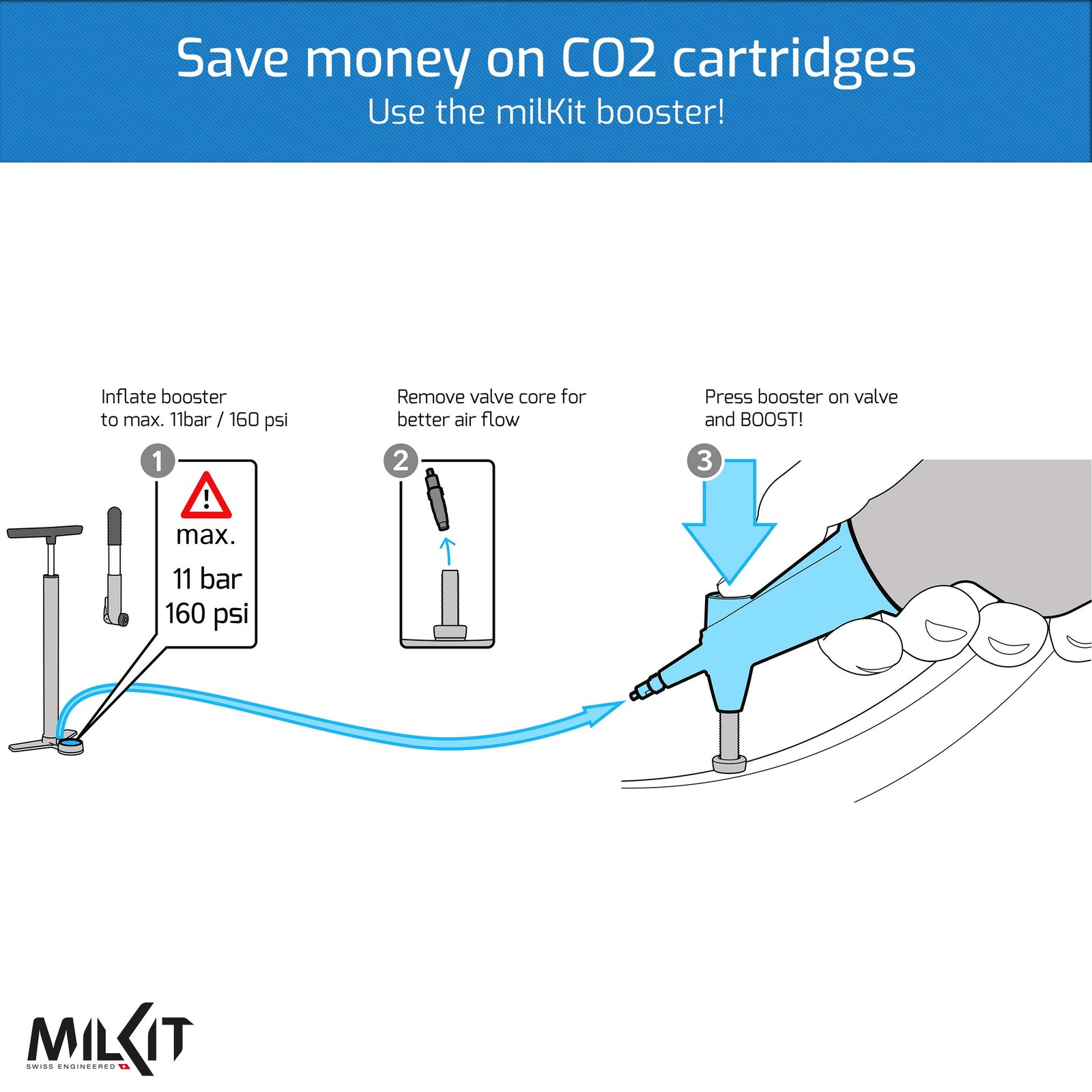 🏆 The Booster won an Eurobike Award as an innovative, high-quality mountain bike accessory, with judges calling the product a “must for mountain bikers”. 🚲 takes the installation of tubeless tires to the next level with the Booster. You don't need to invest in an air compressor or buy a tubeless floor pump. 🚲 The Booster is compact and lightweight (only 150 grams / 5.3 oz!) and can be brought along on the ride or easily stored in a small space at home. Without hoses or additional valves, full air pressure can be applied directly to the valve, making it more efficient than other inflators. With pressures up to 11 bar / 160 psi it can easily inflate tires up to 29 plus. 🚲 The Booster does not have a button that you need to press - it simply works by pushing it onto the valve stem which will action a spring valve. The booster is an inflation help to seat tubeless tires on your rim - it's not supposed to inflate the tire to full pressure (you do that with your pump afterward). It works with most Presta valves (doesn't work with Schrader valves) and the valve stem has to protrude at least 0.5in/13mm from the valve nut so it can open the internal slider in the booster head. 🚲 The Booster can be used with a bicycle pump and is compatible with most tubeless valves. For best results, use the valves to keep the air in the tire even with the valve cores removed - thanks to their patented rubber flaps. 🚲 2-in-1 product: The Booster can also be used as a water bottle, making it the perfect 2-in-1 product for your ride. No need to take wasteful and pricey single-use CO2 cartridges on rides anymore! 🚲 The 0.75L / 25 oz bottle fits into a bottle cage and is still large enough to inflate even the most stubborn tires. A drinking bottle cap is included as well as a drawstring bag to store your booster head safely. QUICK AND EASY TIRE INFLATION: Just press the Booster directly on the valve and BOOST! The Booster is the most efficient solution for seating a tubeless tire on a rim. No air compressor needed and works with any bike air pump! INFLATE TIRES WITH A BOOST: Without hoses or additional valves, full air pressure of up to 11 bar / 160 psi is applied directly to the valve, successfully seating even the most stubborn tubeless tires on the rim. PERFECT 2-IN-1 ACCESSORY: Use the Booster as a water bottle and tubeless bike pump on your ride. Compact, light and easy to store, the Booster fits into a bottle cage. NO MORE CO2 CARTRIDGES: Save money and be more environmentally friendly. With the Booster, CO2 bike tire inflator cartridges are a thing of the past, saving you money and reducing waste. THE PERFECT CYCLING GIFT: The versatility and unique features of this product make it one of the best gifts and cycling accessories for cyclists you can find!