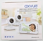 AXVUE E612 Video Baby Monitor with 4.3" LCD Screen and Two Cameras, Night Vision, 800 ft. Distance and 8H Battery Life, Auto-Scan, Two Way Talk, View Angle Adjustable. , Power-saving Video ON/OFF AXVUE E612 Video Baby Monitor with Night Vision and Night Light ("the product") is an easy device to monitor your baby's safety! It is consisted of one cameras and one 4.3" portable TFT-LCD screen, which are integrated with advanced 2.4GHz digital wireless technology, for the benefit of high quality video performance and secure privacy. The product is versatile with features as below - Super long distance and standby time up to 800 feet. Temperature detection and display. See different angle by Pan & Tilt Camera, which can be operated by the portable unit. 4.3 inch TFT-LCD Screen. Sound Lights Alert. Color volume display. Clear Automated Night Vision. 2-way Talk (send your voice to the camera). Support up to 4 camera (additional cameras sold separately) Most convenient operations and utilities. Kick-stand on portable screen, quick video on/off, digital zoom in/out, select cameras, common A/C adaptors, low battery/out of range indicator.