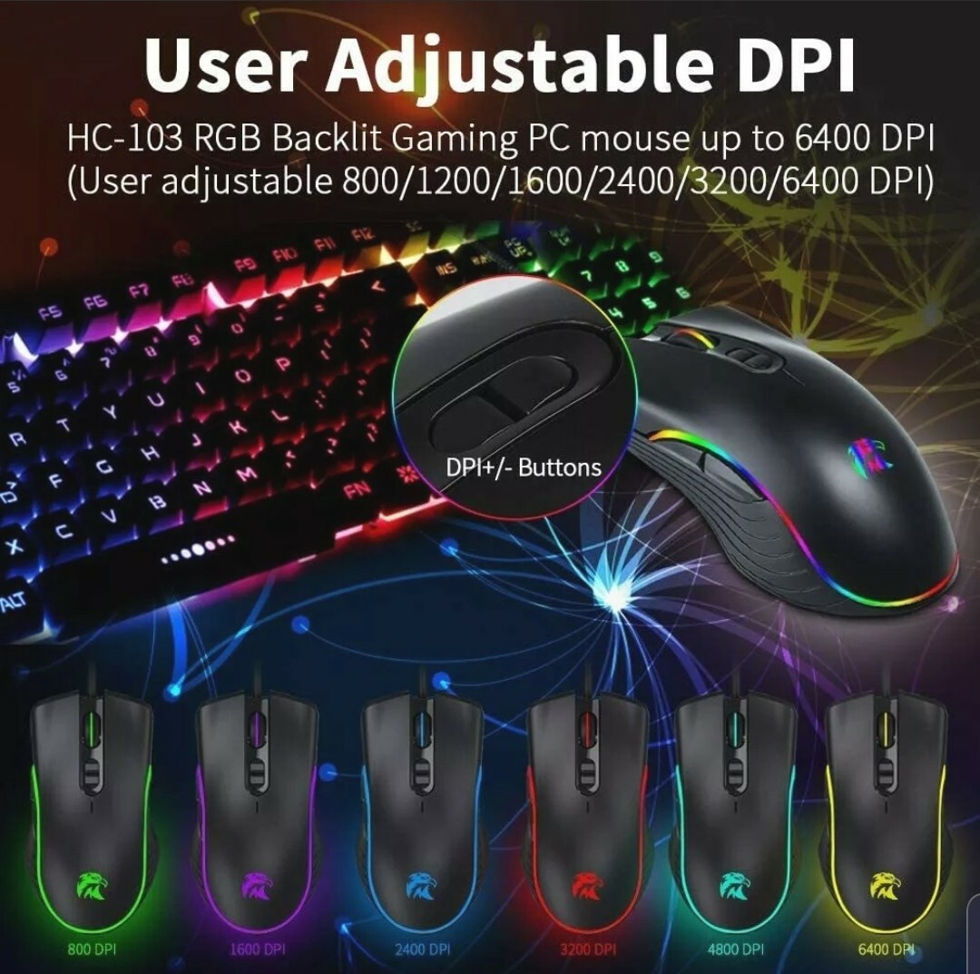 BAIBAO RGB Gaming Mouse Ergonomic Wired 7 Keys Programmable Breathing RGB. Condition is "New". Shipped with USPS First Class. 🎁 Bonus: randomly chosen laptop stickers, while supplies last. WIRED GAMING MOUSE WITH SIDE BUTTONS??BAIBAO HC-103 RGB is a durable gaming mouse that can provide up to 6400 DPI (user-adjustable 800/1200/1600/2400/3200/6400 DPI). Mouse movement recorded to precise positioning: With two DPI buttons, you can easily adjust DPI to obtain high precision and consistent accuracy. The micro switch can ensure the service life, durability and extremely high performance during PC games or computer editing work. responding speed. ??ERGONOMIC GAMER MOUSE??BAIBAO HC-103 with symmetrical & streamlined provides a comfortable claw-grip design, long-term use without fatigue. Top choice for computer game players to keep your grip Firmly during game play. Excellent cool wired PC gaming mouse for casual gamers. ??HIGH-END PC GAMING MOUSE FEATURES??The BAIBAO HC-103 RGB Mouse features; Adjustable RGB light, Anti-Skid Scroll Wheel, Durable smooth TEFLON feet pads for ultimate gaming control. Total 7 buttons. Comes with howling wolf LOGO design, 6 monochrome light and middle roller light together with RGB light changing by adjusting the DPI. Perfectly compatible with Windows 2000/XP/03/VISTA/7/8/10 system for programmable using and IOS for normal using. ??RELIABLE QUALITY& SERVICE??BAIBAO HC-103 PC gaming mouse, 10 million clicks lifespan, intricate polish manufacturing processes and meticulous assembly provide the functional reliability of the mouse for years. Please add the ShondaLand Store to your favorites for more awesome products at discounted prices!
