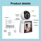 Rotation: Elevate your home security with our cutting-edge camera featuring seamless monitoring with a 355-degree horizontal rotation, and a 120-degree vertical rotation, ensuring no corner goes unseen. Recognitions: Equipped with face, human, pet, and voice recognition capabilities. Enjoy unparalleled peace of mind as our intelligent system identifies familiar faces, distinguishes between humans and pets, and responds to recognized voices, ensuring the utmost security and convenience for you and your loved ones. Communication: Empower seamless communication with our camera's advanced two-way video call feature, enabling you to connect face-to-face with loved ones or monitor your space in real time. Connect instantly by simply pressing the green call button on the camera or tapping your phone for seamless communication anytime, anywhere. Stay connected and in control from anywhere with crystal clear color, sound, and quality display at your convenience. Quality & Capabilities: Capture every detail with superior color accuracy and wider viewing angles within our stunning HD 3 MP resolution camera, while enjoying the convenience of cloud storage via an SD card and efficient video compression with H.265 technology. This is Two-way Video Calling Smart Camera Baby Monitor used to Monitor Babies, Elderly, Sick Loved Ones and our Dogs, Cats/Pets while we are away from home. It is an HD video camera, with a 2.8” screen to see and talk to your baby while you are away from them. Features: HD 3MP, Video Call, Full Color Day and Night, SD Card Cloud Storage, Human Face and Pet Recognition, Intelligence Voice, H.265 Video Compression, and Smart Camera Rotation.