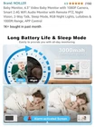 Baby Monitor, 4.3" Video Baby Monitor with 1080P Camera, Smart 2.4G WiFi Audio Monitor with Remote PTZ, Night Vision, 2-Way Talk, Sleep Mode, RGB Night Lights, Lullabies & 1000ft Range, APP Control New open box Please see all pictures Never used Top highlights Recommended Uses For Product Elderly Caring, Baby Monitoring, Toddle Monitor, Split Screen Baby Monitor, Baby Camera for Room, Video Baby Monitor, Camera Monitor, Audio and Video Baby Monitor, Travel Baby Monitor PortableElderly Caring, Baby Monitoring, Toddle Monitor, Split Screen Baby Monitor, Baby Camera for Room, Vid… See more Brand NOILLER Model Name ZY-BB2 Connectivity Technology Wireless Monitor & 2.4G WiFi Smartphone APP Special Feature Motion Detection, Noise Detection, Night Vision, Split Screen, 2-Way Audio, Long Battery Life, PTZ Technology, PortableMotion Detection, Noise Detection, Night Vision, Split Screen, 2-Way Audio, Long Battery Life, PTZ Technolo… See more Indoor/Outdoor Usage Outdoor, Indoor More Convenient with Dual Usage: comes with plug-and-play 1080P camera and 4.3" HD monitor,our baby camera monitor offers two options for you to stay connected with your baby wherever you are. You can view the baby by the monitor without wifi at home(Max range of 1000ft), or use the "Safeview" smartphone APP (2.4G wifi needed) to check the baby's status when you are on the go. Adopting with low-frequency 915Mhz WiFi chip, it supports longer transmission distance & more stable connectivity. Full Coverage for Peace of Mind: the baby camera can cover every corner to gives you a panoramic view with its 355° pan 100° tilt function, and the digital 2X/4X zoom in feature ensures that no detail will be spared. Thanks to the 3000mAh rechargeable battery and the unique low-power technology, after setting, the monitor will automatically enter into sleep mode when there is no event trigger like noise/motion/low battery..., which can offer you the longest standby time of 5-7 days. Upgraded Protection & Caring: to give a great sense of security to parents who have babies, our portable baby monitor adopts multiple thoughtful functions to protect the baby all-day effortlessly and make the baby caring easier, which includes noise & motion detection, motion tracking, temp & humidity detection and feeding reminders, you can know exactly when you are needed. And the split screen feature allows you to install 2 cameras in different rooms to see your baby in all directions. Rest Assured throughout the Night: the video monitor baby camera will automatically switches to night vision at night with clear black and white images, which makes it easy for parents to observe babies without disturbing them. Built-in speaker & mic allows you to quickly respond to your baby's needs or soothe the baby. The colorful night lights, lullabies can create a comfortable environment for your baby and lull the baby to sleep. A great choice for baby shower/registry, new parents. Dual Storage & Hack Proof Connection: our video monitor supports Micro SD card(up to 128GB, not included) and cloud storage to make it possible for you to record the precious moment of the baby. With the advanced hack-proof and encryption technology, it supports camera browsing records checking and wifi connection control to ensure your safety and privacy. To improve the success rate of wifi pairing, the camera also supports bluetooth network pairing.