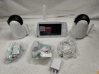 This baby monitor from Hipp is the perfect addition to any nursery. With two cameras and a 5" 720P video display, parents can keep an eye on their little one from any angle. The pan-tilt-zoom cameras allows for easy adjustments, while the temperature monitor and two-way audio features provide added peace of mind. Additionally, this camera is compatible with 2.4GHz FHSS smart home protocols, ensuring a secure and reliable connection. Whether you're a first-time parent or have a growing family, this baby monitor is a must-have for any home. Item has been used, but has been taken care of really well. System functions as it should. See photos as part of description.