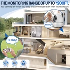 【1080P 5" HD Baby Monitor with Audio】Enjoy the 1080 HD image on the large 5" video baby monitor display which provides a clear, safe view of the baby. It's convenient to remote control baby cameras to rotate horizontally and vertically, gives you a larger view of your baby's room. Never miss a moment using our baby monitor for home. 【Night Vision & Auto Rotating Camera】 Watch your baby in the nursery with the IR night vision of this high-end portable baby monitor. Baby cameras room monitor no wifi required allows you to clearly see the nursery at all times. When the lights are out, the built-in room temperature monitoring and alarm, sound level LED indicator on the baby monitor will alert the parents. 【2-Way Talk & VOX Mode Baby Monitor】The crystal clear Two-Way Audio feature allows conversation both ends as clear as if you were in the same room with your little one. Use the portable baby monitor, you can comfort your infant from any room, which has a crystal-clear sound quality that soothes crying babies. 【32-Hour Battery & 4X Digital Zoom Baby Monitor】After 32 hours on a single charge of a battery powered baby monitor, you can easily monitor your baby all day long. Our baby monitor with camera is the best view baby monitor which allow you to quickly respond to your baby's needs or to soothe your baby. 【Up to 1200ft No Wifi Travel Baby Monitor 】With up to 1,200 feet of range, you can go about your day and stay connected with your baby from another room or even from the yard. No wifi baby monitor with 2.4GHz enables an ultra-stable, ultra-secure connection. This long range baby monitor with camera and audio no wifi, you don't have to worry about hacking, protect your infant.