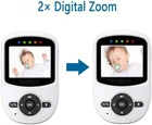 Product description Product description Wide Angle You can manually pan(360 degrees) and tilt(60 degrees) the camera's angle to observe the baby more comprehensively. 2x Digital Zoom This baby monitor can be zoomed in twice to see your baby closer and more clearly. So you can find out more carefully whether your baby wakes up or not and the other behaviors. Rechargeable Battery The baby monitor uses a rechargeable Li-battery. It will alert when the parent unit's power is below a certain value. This will remind parents to recharge the battery and continue to care for their lovely baby. And in ECO mode, the operating time can last longer. Package 1 x Baby unit 1 x Parent unit 1 x User manual 2 x AC power adapter 1 x Wall anchor 1 x Screw Noted This product contains small parts, please keep away from children. ♥ 2.4 INCH HIGH QUALITY COLORED SCREEN ♥ -- This video baby monitor features a high quality TFT color LCD display with 2.4GHz FHSS wireless transmission. Allowing you keep baby in view clearly whenever you are. ♥ TWO-WAY TALK &LULLABIES PLAY ♥ -- When your baby is crying, you will find it the first time and coax the baby through your parent unit. And you could play the lullabies to make baby fall asleep again. ♥ INFRARED NIGHT VISION&TEMPERATURE MONITORING ♥ -- This video baby monitor has 8 infrared lights and could monitor baby at night constantly. You won’t worry that can’t see the baby clearly in the dark anymore. It will monitor the temperature around baby to confirm in comfort. ♥ LONG DISTANCE TRANSMISSION ♥ -- The baby monitor has long transmission distance that could reach 900 feet in open space. It enables you to take the screen to anywhere in scope. And it could through three walls without less signal interference indoors. The transmission distance varies by environment. ♥ ECO AUTO WAKE-UP&FEEDING ALARMING ♥ -- In ECO mode, when the baby's voice is loud to a certain extent, the screen of parent unit will be awakened. When the sound around the baby and baby unit becomes smaller, the screen of the parent unit will stop display again. Parents can also set 2 hours / 4 hours / 6 hours / 12 hours alarm clock to remind feeding time. 2.4GHz Private Transmission The baby monitor is transmitted via a secure 2.4GHz channel with FHSS technology. This ensures no data is shared through the internet. It’s a real-time display. This will be more secure. Always Stay in Touch With the baby monitor, you can see, talk and listen to the baby in the living room, in the kitchen, in the bedroom or in the yard. It will be more convenient to look after your baby. Auto Infrared Night Vision The 6 pcs 940nm built-in IR LEDs technology allows you to see your baby clearly in the dark. The infrared night vision will automatically detect dim light, so you can always make sure baby’s movements. Enjoy Your Time freely You can enjoy your own time and keep eyes on baby with the baby monitor at the same time. When your baby cries, you can play the built-in lullabies to soothe the baby. 5-level sound & 2x Zoom The baby monitor features 5-level sound volume and LED indicators. And you can see your baby closely in the 2x digital zoom. Wide Angle Manually The camera can manually pan (360 degrees) and tilt (60 degrees). You can manually adjust the camera to find the best angle to observe your baby.