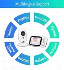 Baby Monitor is a portable baby monitor with 3.2-inch color LCD display. 260M wireless digital signal transmission distance, no need for network connection, automatic pairing and networking, allowing you to pay attention to your baby's playing or sleeping status when you are busy. You can play lullabies through the parent console, check the temperature of your baby's room, and talk to your baby through the two-way voice function to comfort your baby. Attention: The appearance of this product packaging upgrade, the new version of the display from the original 3.2 inches upgraded to 3.5 inches and the addition of new antenna signal is more stable, the battery capacity upgraded to 1500MA / H, the core functions of the product remains unchanged. The old and new versions will have mixed delivery, mind you do not shoot! Hassle-Free Portable Monitoring Two way(talk back) Temperature monitoring Built-in lullabies in the camera Automatic night vision High contrast 3.2 ″ color LCD monitor Secure, interference free, long range digital signal Long battery life (18 hours in Vox mode) Built-in lullabies may help the parent comfort the baby fall into asleep. Know your baby's room temperature all the day long without worries! Two way audio between the camera and monitor, you can talk back to baby. Keep an eye on baby all night long with automatic night vision No need to charge the battery for the monitor In the whole night in Vox mode Multiple languages support(English/French/Spanish/Portuguese/Italian/German/Russian)