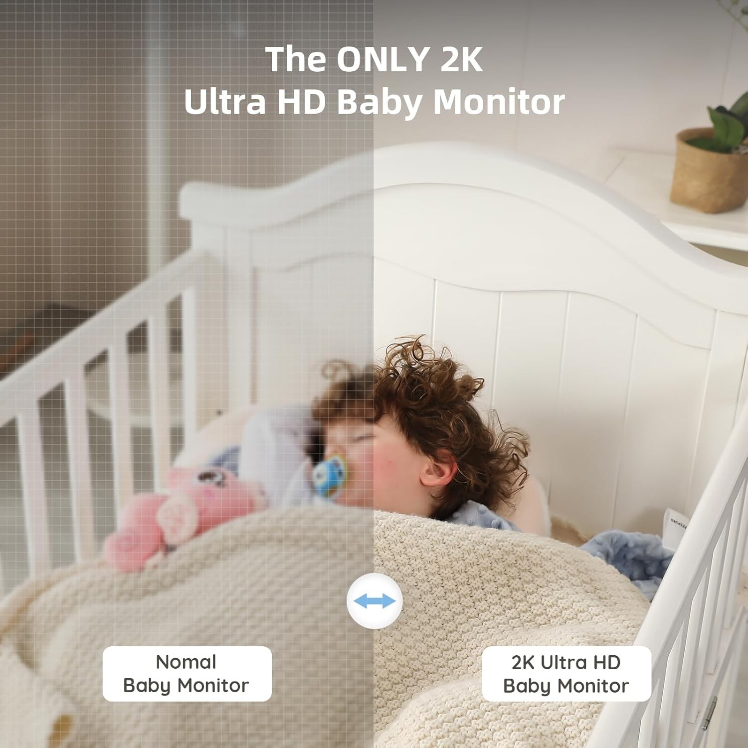 Baby Monitor with Camera and Audio, Face Covered Alert, Al Cry Soothing Lullaby, 2K HD Camera, Auto Photo Capture, Virtual Fence, Infrared Night Vision, Sleep Analysis, Temp& Humidity Detection.
