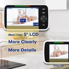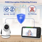 No WiFi Baby Monitors: baby monitors eliminate WiFi concerns, utilizing advanced 2.4GHz FHSS and digital encryption technology to secure against hackers Infrared Night Vision: Automatically switches in dark environments, clearly capturing baby's movements, poviding round-the-clock monitoring for parents' greater peace of mind Two-way Talk: Real-time voice communication enables seamless interaction between parents and baby, providing instant comfort and strengthening the parent-child bond Remote Video Baby Monitor: 5 " screen, 355 ° horizontally and 120 ° vertically rotation, 2x zoom, for full room coverage Audio Power Saving Mode: 3500 mAh battery, 16 hours of video monitoring or 30 hours of audio monitoring, VOX sound-triggered wake-up with adjustable sensitivity, auto-off after 30 s silence for energy efficiency After-sales Plan: Enjoy a full year of after-sales coverage from the purchase date, with our swift and reliable customer support team, staffed by real people (no robots!), ready to assist you anytime Feature-packed Smart Baby Monitor: Room temperature monitoring with alerts; 8 language options; 8 lullabies to soothe baby; volume LED indicator; versatile desktop or wall mounting; multi-camera expansion (up to 4 cameras); and feeding reminders