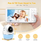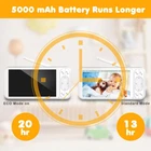 Immersive 5" 1080P HD Remote Pan & Tilt Zoom Display: Experience exceptional clarity with our 5" 1080P HD display. Remotely pan, tilt, and zoom to cover every corner of your baby’s room, ensuring you capture every detail with precision and vibrant true colors. Infrared Night Vision & Two-Way Audio: Keep a close watch on your baby even in complete darkness with advanced infrared night vision. This baby monitor with camera and audio supports convenient connection of up to four cameras within a 1200ft range, enabling comprehensive coverage of multiple rooms. Utilize the two-way audio feature to communicate instantly, providing comfort and reassurance to your baby with the sound of your voice. Extended Battery Life & Long Transmission Range: Enjoy prolonged monitoring sessions with a robust 5000mAh battery, offering over 13 hours of screen-on time and up to 22 hours with the screen off. The enhanced FHSS technology ensures a stable connection up to 1200 feet, giving you the freedom to move around your home without losing signal. Multifunctional Video Baby Monitor: This versatile baby monitor features a built-in night light with 7 soothing colors, 8 pre-installed lullabies with adjustable volume, and a temperature monitor to ensure a comfortable room environment. VOX wake-up mode activates the monitor based on sound detection, and TF card (Not Included)support allows for additional storage options(supports up to 128GB CLASS 10 and above. It is recommended to use a regular brand TF Card). Secure and Private Connection: Rest assured that our advanced FHSS technology, provides a secure and private connection with no Wi-Fi or app required. The baby monitor no wifi ensures interference-free audio and video transmission, keeping your baby’s monitor safe from unauthorized access and giving you peace of mind.