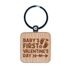Baby's First Valentine's Day Engraved Wood Square Keychain Tag Charm