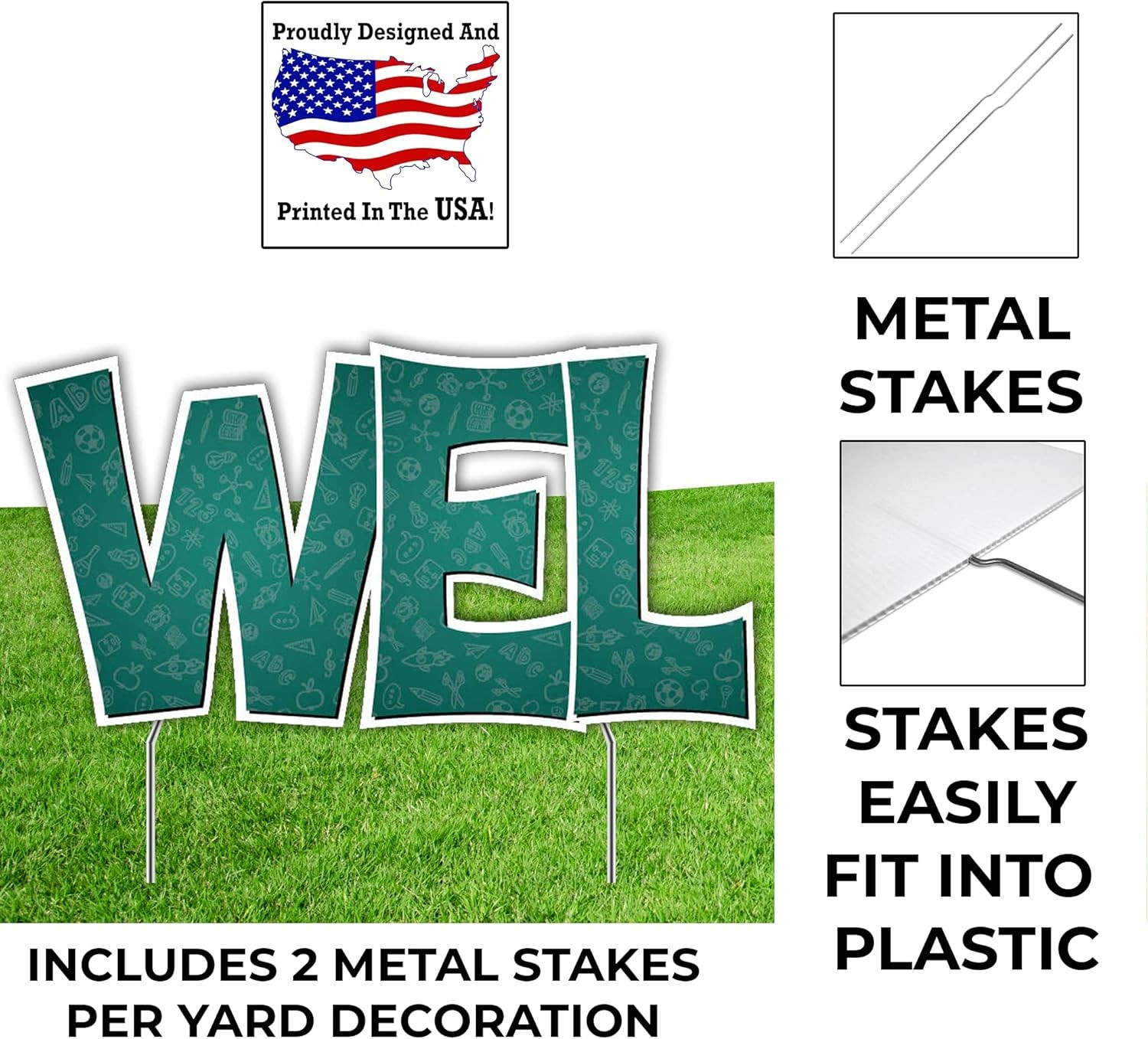 Store New Arrivals Add to Favorite View Feedback Contact Victorystore Welcome Back to School Yard Decorations, First Day of School Lawn Cards, 12Pcs, Includes Metal Stakes (Multicolor) Description Item model number 19443 Global Trade Identification Number 00818363026359 Style Sturdy Mounting Type yard Color Multicolor Product Dimensions 18"L x 12"W Material Plastic Shape Rectangular Item Weight 4.29 pounds Theme Back To School Pre-printed Welcome Back to School Recommended Uses For Product Welcoming students on the first day of school Brand VictoryStore Included Components 24 sturdy metal stakes, 12 signs Greet your students back to school with our welcome back to school waterproof yard card set. FILLERS: This set is perfect for adding between layers of yard letter text to hide stakes. STURDY METAL STAKES: This set includes 24 sturdy metal stakes. Use 2 stakes per sign cutout. SCHOOL DECOR: The quality color graphics make a happy first day of school celebration MADE IN USA – Order these and other festive products made by a family business in Davenport, IA Product description VictoryStore Back To School Yard Signs Easy Setup VictoryStore signs are designed for easy setup. Simply slide the metal stake into the corrugated plastic flutes. Metal Stakes The metal stakes feature a dog-leg bend to prevent signs from sliding. Waterproof VictoryStore uses only the highest quality of materials ensuring our signs withstand outdoor elements. Made in the USA VictoryStore, a family-run business, proudly designs and prints our products in the USA. Discover More Back To School VictoryStore Decorations Back To School Yard Signs Welcome your students and staff back to school with our giant Yard Letters! Yard Signs with a Selfie Frame Strike a pose on the 1st day of school with this yard decoration set! Back To School Chalkboard Greet your students back to school with our welcome back to school yard card. 26 Yard Signs with Stakes Welcome back to school: 26 pieces with 12-inch stakes for easy display. 29 Yard Signs with Stakes Welcome back to school: 29 pieces with 12-inch stakes, and a selfie frame! 14 Yard Signs with Stakes This set includes 28 sturdy metal stakes. Use 2 stakes per sign cutout. - Custom Welcome Back Decor Showcase your school name with these custom yard letters welcoming students back Oversized Yard Card The main sign in this display is 6 feet wide by 3 feet tall. Huge Back To School Yard Sign Immerse students in a world of scientific wonder with the Back To School Sign 2 Color Yard Letters Select 1 color for welcome back and 1 color for your school name. Can be used indoors as well. The main sign is folded and can be used as indoor display with is bi-fold design Complete Outdoor Set 11 waterproof signs and stakes included, create a captivating outdoor experience - Fun Emoji & Science Signs Sparks joy in learning. Vibrant combo for a positive school vibe Quick Display The letters are connected making your setup time a breeze Oversized Ez Yard Cards The big sign is 6x3 feet covering a lot of space with an easy installation Massive 'Welcome Back' Sign! Impressive size, bold statement. Perfect for a grand welcome! Sturdy Metal Stakes This set includes 24 sturdy metal stakes. Use 2 stakes per sign cutout. 1st Day of School Pictures School Yard signs are great for the first day of school pictures Express Gratitude, Spark Excitement Back-to-School Bliss: Transform Your Campus with VictoryStore's Vibrant Signs Elevate your school spirit with VictoryStore's Back-to-School Sign Set. Transform your campus into a colorful expression of gratitude for the dedicated educators shaping young minds. Ideal for welcoming the new school year or any occasion, these signs foster community, acknowledge teaching staff dedication, and create a positive atmosphere Founded in 1999, VictoryStore is a family-run company. We proudly design and print in the USA, and are situated in a repurposed school to preserve Iowa farmland. Our facility supports community youth activities, offering party supplies, campaign/team signs, custom socks, vinyl banners, and promotional items. We emit no significant pollution in our manufacturing. ABOUT US We offer the best prices around on high quality products. Our E-store includes media such as books, movies, music and games while offering electronics, toys, sporting apparel, clothing, tools, general home, garden items and more. SHIPPING We are always working hard to ensure your package arrives as soon as possible. Please understand that some factors like weather, high postal traffic, and the performance of shipping companies are outside of our control. For shipping outside of the continental USA, we only use eBay's Global Shipping Program.The item is shipped to KY and then sent to the rest of the world. International customers are responsible for all duties and taxes. Continue to check out in order to calculate costs for shipping the item to your country. Messages regarding eBay's Global Shipping Program MUST be directed at eBay EXCLUSIVELY. RETURNS We offer a 30-Day Return Policy on items which you are not completely satisfied with. You have the option for a full-refund or an exchange of the item. No returns are available on items shipped outside of the USA. PAYMENT We accept PayPal. CONTACT US This page content is yet to come Please ad us to your favorite seller and visit again later Thank You CUSTOMER SATISFACTION We try our very best to make sure every customer is completely satisfied. If there's a problem, message us! We're happy to help. WE ACCEPT Copyright © 2021 AutoDS. | All Rights Reserved