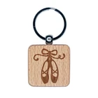 Ballet Shoes Slippers Ballerina Engraved Wood Square Keychain Tag Charm