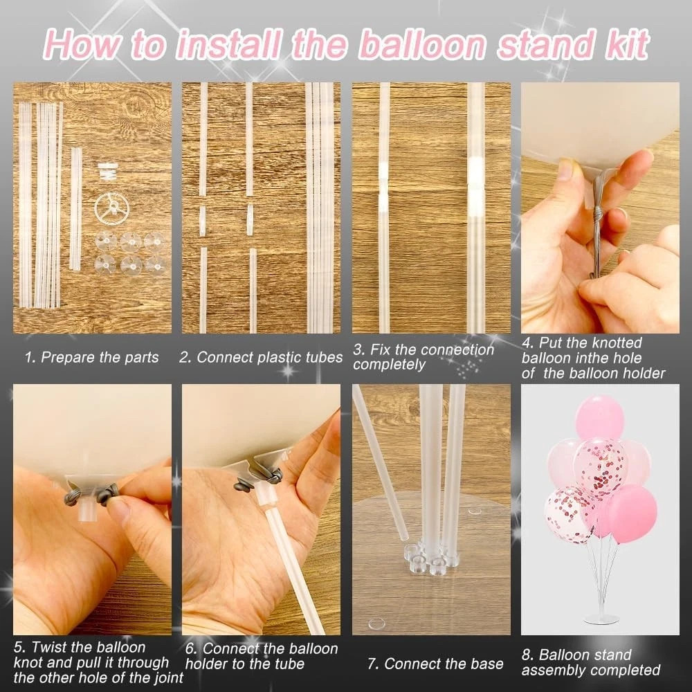 LBNZC Balloon Holder Kit – 4 Sets Table & Floor Balloon Stand Decoration | Noah’s Goods Store LBNZC Balloon Holder Kit – 4 Sets Table & Floor Balloon Stand Decoration Sold by: Noah’s Goods Store Brand LBNZC Color Transparent Material Plastic Shape Round Item Weight 0.28 Kilograms About This Item 🎉 Perfect for Any Occasion: Ideal for weddings, birthdays, baby showers, graduations, Christmas, New Year’s, and more. Adds a joyful touch to your décor as table or floor centerpieces. 💡 Versatile Use: Great for both indoor and outdoor decorations. Perfect for balloon arches, gender reveal setups, party tables, and holiday displays. 📦 Complete Package: Includes 4 full sets of balloon stands. Each set holds 7 balloons (total 28 balloons). Comes with bases, poles, joints, and cups. (Balloons not included.) ⚙️ Easy to Assemble: Quick setup in minutes. Connect poles, attach balloon cups, and secure to the base. Stable and elegant display guaranteed. ✅ Durable & Reusable: Made of transparent, sturdy plastic — lightweight, reusable, and built for long-term use. 💬 Customer Satisfaction Guaranteed: Each kit is quality-tested. Contact us anytime for quick and friendly support. Handling Orders are typically processed and shipped within 1-2 business days . Each item is securely packaged to ensure safe delivery. Payment We accept all major payment methods through eBay’s secure checkout system. Please complete payment within 3 days of purchase. Returns We offer a 14-day return policy . If you are not satisfied with your purchase, please contact us for assistance. Items must be returned in their original condition. Thank you for shopping with Noah’s Goods Store — your trusted source for quality products and great service!