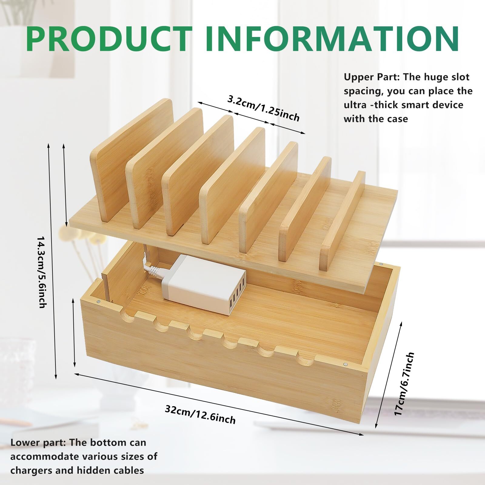 ➤【Eco friendly and Sturdy】- Made of natural bamboo, classic material design can be maintained for a long time. The appearance of the bamboo of our toll station will enhance the appearance of your workbench, thereby increasing the overall luxury feeling. The multi-port charger can also be used separately, and its size is relatively small and easy to carry. It provides 5 USB output ports, which can charge multiple devices at the same time. This whole set is a great gift for your family or friends. ➤【Multiple Devices Organizer】- LEOKKARR bamboo dock station can accommodate at least 6 smart devices, Compatible with iPhones, iPads, Airpods, Android smartphones, USB devices, tablets, cameras, Switch, kindle, power banks, headsets, and so on. simultaneous maintaining your devices in order and helps to clean up the stacking device charging. ➤【Suitable for Multiple Scenes】- The charging station is practical with great storage and organizing capability. It is suitable to be used in office desktop, meeting room, living room, hotel and bedroom. It's not only elegant designed, but also create a secured use environment while charging. ➤【Fashion Creative Design】- Magnetic Large Base: allows you to hide all cables and power strips or USB hubs, USB chargers and keep the cables neatly and save space. Large Compartment Above: The distance between each baffle is 1.25 inches. Basically, all smart devices can be placed, the device with a protective shell can be placed, and multiple mobile devices can be placed at the same time. Farewell to the messy desktop. ➤【WHAT DO YOU GET】- A large bamboo charging station organizer, 5-Port USB Charger, 6 Pack charging & sync data cable (3xiPhone cables, 2xType-C cables, 1xAndroid cable). Quality & safety assurance is our eternal pursuit and promise. If you have any issue, please contact us immediately & we’ll get back to you within 8 hours until you are satisfied. Click 'Add to Cart’ to order now.