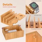 Recyclable Material: The charging station is made of organic bamboo, which is the first choice for environmentalists. And it is stronger and more durable than plastic. The natural texture of the bamboo charging station can be matched with various decoration styles Multifunctional Design: The multifunctional charging stand has 4 slots and is equipped with a watch stand, which can be compatible with mobile phones, tablets, e-readers, watches and other electronic devices. You can charge multiple devices at the same time Magnetic & Non-Slip Design: The large space base adopts magnetic design, which is easy to assemble and disassemble. Enough space allows you to place the charger and organize the charging cable to keep the desktop tidy and save space. There are non-slip pads at the bottom to avoid moving and slipping during use Suitable For Various Occasions: This bamboo charging station is simple and practical with great storage and organizing capabilities, and is suitable for use in occasions where multiple electronic devices are used. Such as offices, meeting rooms, classrooms, homes, hotels, parties, etc What You Get: 1 x BEEBO BEABO bamboo charging stand, 1 x watch stand and 6 x Charge Cable. If the product has any questions, please contact us. We will reply to your message within 24 hours and help you solve it Product Description Smart Watch Stand Designed specifically a holders for Smart Watch. While supporting we can also charge for them. Magnetic Design Our charging dock uses a convenient magnetic design, which is convenient for you to place the USB charger and adjust the position of the charging cable to better manage your devices. Multi Wire Slots With multi built-in holes, it allows the wire cables to be connected with the Smart devices on the top or on the side while charging. This can better protect the charging cable from bending and breaking. Non-Slippery Bottom To prevent the bottom from moving, we installed silicone pads on the back of the charging station. These pads hold the box firmly in place on the surface.