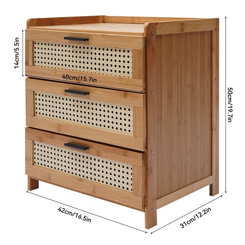 This bamboo nightstand is a perfect blend of style and function! The three sliding drawers provide great storage while the smooth, natural wood gives it a sleek, modern look. It’s sturdy, eco-friendly, and adds a touch of elegance to any bedroom. The retro-inspired design with dense net patterns makes it stand out—simple yet fashionable. Definitely a great addition to my space!