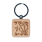Bamboo Plants Engraved Wood Square Keychain Tag Charm