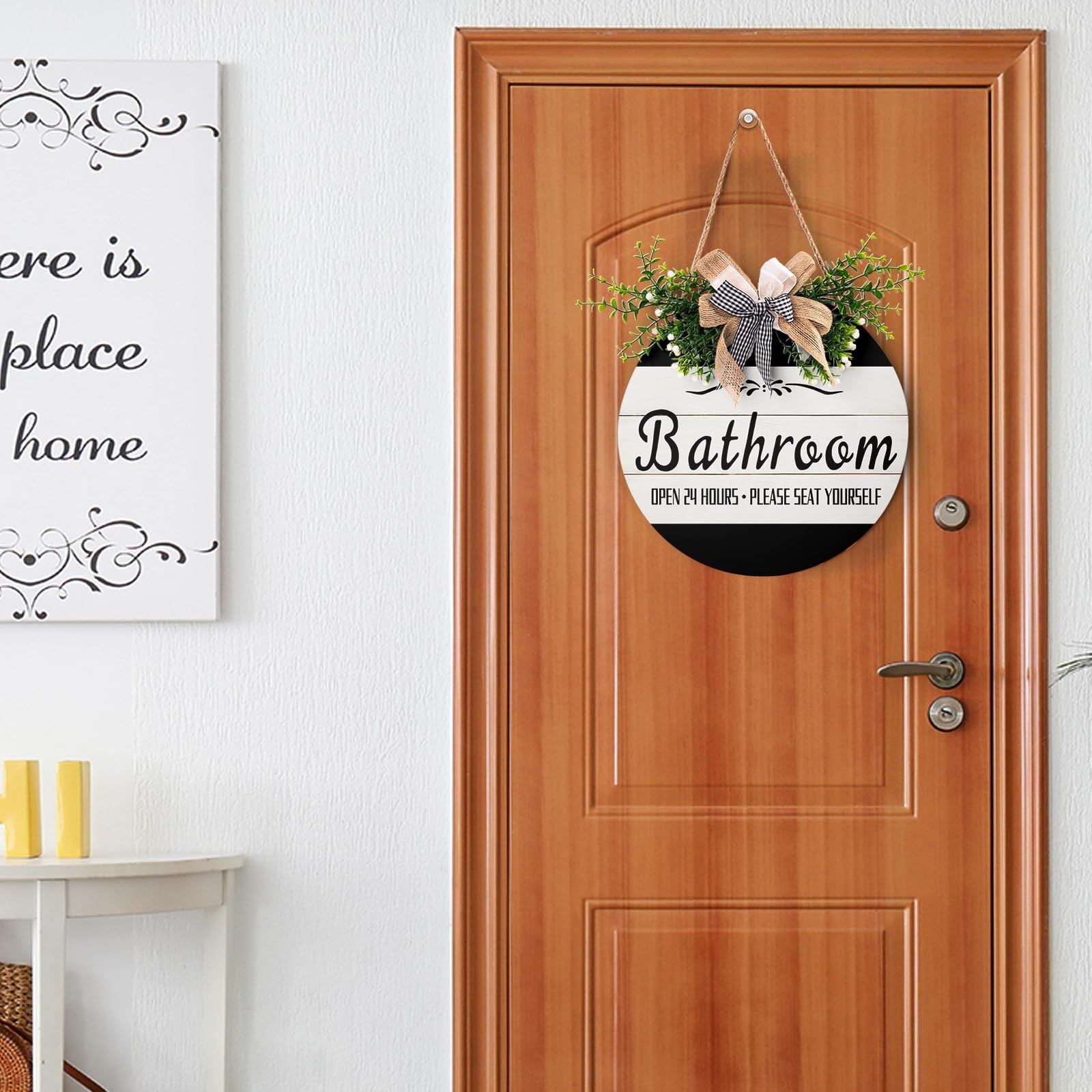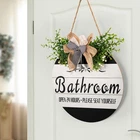 Bathroom Signs for Front Door, this home sign will be a great complement to your home decor style, bring a comfortable and warm atmosphere to home. 【Specifications】 Material: High quality material wooden. Thicken, durable, not easy to break. Dimensions: 12x12 inches(30x30 cm). Quantity: 1 x round wooden hanging sign with buffalo plaid bow. Pattern: Bathroom open 24 hours please stay yourself. Application: hang for door, wall, window etc. 【Decorative and application】 Our welcome door sign is thicken, durable, environmental protection, with strong rope to hang on your door or anywhere you want, print with nice-looking lettering, long-lasting and waterproof. Perfect to hang it or set anywhere, wall or front door, front porch. These wooden sign will not only embellish your room, but improve your mood, novel and exquisite, giving you a good visual effect .small changes can make a big difference. A beautiful decorative atmosphere can improve the happiness in life. 【Perfect Gifts Choice】 Safe and reusable, a fancy gift for your relatives, neighbors, friends, teachers and so on. It is to give them your best wishes and blessings, and can be used as the housewarming gift. 【Notes】 Please allow slight size errors color differences due to manual measurement and environment. Please contact us if you have any questions, we will reply to you as soon as possible. 【Sincere Service】 If you have any quality problems, please contact us, we will give you a satisfactory answer. We hope this artwork will bring a different color to your space! 【Quality Material】The bathroom signs for front door decor are made of solid thick wooden, with smooth wood texture. Ensure an attractive appearance without losing durability, which is environmentally friendly, durable and not easy to break or deform. The guest bathroom decor is guaranteed with superb workmanship that will match perfectly with your interior design. 【Suitable size】This bathroom signs decor farmhouse measures 30 x 30 cm/ 12 x 12 inches, and in good shape, about 0.3 inches thick, portable to carry. Each listing is equipped with come with a hemp rope for easy hanging, is sure to catch everyone' s attention. Please ensure the size can meet your demands before ordering! We are confident of that our eye-catching style will Improve your taste in decoration. 【Unique Designs】Funny bathroom signs wall decor that will compliment any room and style. Artificial green plants and beautiful bows are manually glued on the round wooden plate. Its gestures make it visible even from a distance and deliver written messages. Hanging it on the wall of bathroom to create extra modern farmhouse rustic sense for your bathroom. 【Wide Application】This farmhouse bathroom decor sign is a must-have wall and door decor in your home’ s or office’ s bathroom or restroom. perfectly fit to hang on wall at the front porch door, back door, living room, bedroom, entryway, mantel or leaned on a shelf or anywhere throughout your home! Great for bedroom, living room, farmhouse and bath room. The bathroom signs decor is big enough for friends, family, guests, and coworkers to see! 【Present Idea】This high quality bathroom sign matches other modern farmhouse and country themed decorations, great for personal expression,ou can give it to your friends and families, as a clever present idea and great for people of all ages. It could be hanging on the door or the wall, or put it on shelves and tables. The appropriate size makes the farmhouse decor fit in various places. Simple and warm to make your friends and families feel the joyness of life.
