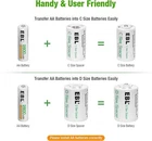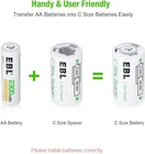 Important information Bulb Voltage 5 volts Legal Disclaimer Statements regarding dietary supplements have not been evaluated by the FDA and are not intended to diagnose, treat, cure, or prevent any disease or health condition. Product Description EBL - Professional Care EBL, since 1998, professional on batteries and chargers more than 20 years. EBL always persistently providing high quality and services for everyone. Advantages of EBL Battery Organizer Storage Case EBL battery organizer storage case is very perfect for home use, prolong your battery life. Adopts partition design, batteries will not sway and collide in case, no squeeze, short circuit and leak, keep your batteries safe and organized. It has a flexible hasps and joints which can rotate 180 degrees, so that you can easily open and close, storage your batteries and charger better. EBL Battery Sets #02 Packages 1* EBL family storage case 1* EBL 40Min Smart Charger 8* EBL AA 2800mAh Ni-MH rechargeable batteries 4* EBL AAA 1100mAh Ni-MH rechargeable batteries 2* EBL C battery adapters 2* EBL D battery adapters Intelligent Auto-detection Incompatiable battery: LED shows RED flashing light, easily helps you detcted all the bad batteries. Green flashing: Charging status. Keep Green: Fully charged. Powerful EBL AA Size Batteries 2800mAh 1. High performance. Precharged 15%~20% of capacity by solar energy. Could be used when you get it. 2.Excellent charge/discharge performance, the batteries will keep a high quality after 3-5 times charge & discharge when used in the first time or long time no used. 3.Longer life in the high drain devices than normal Alkaline batteries. 4.Great for high power demand devices such as digital camera, children' toys and so on. 4 Packs EBL AAA Rechargeable Batteries 1100mAh * Quantity: Pack of 4 AAA 1100mAh Ni-MH rechargeable batteries. * High performance. * Precharged 15%~20% of capacity by solar energy. Could be used when you get it. * Excellent charge/discharge performance, the batteries will keep a high quality after 3-5 times charge & discharge when used in the first time or long time no used. C or D Battery Spacers Just put your AA batteries into C or D size spacers, very convenient to use. With light weight , there is no worry to carry heavy C or D batteries. Just bring light and portable AA batteries, improve your using experience. Smart battery charger AA size batteries AAA size batteries C or D battery spacers For purple : Product Description EBL - Professional Care and Low Self Discharge Professional and reliable on AA/AAA/C/D/9V/Cordless Phone Rechargeable Batteries and Battery Charger. EBL always persistently providing high quality and services for everyone. How to Use C/D Size Spacer: How to Install: Put the + side of the battery into the bottom of the spacer. How to remove: Push the tip of the + side of the spacer with your finger. CAUTION: The batteries will keep a high quality after 3-5 times charge & discharge when used in the first time or long time no used. Features of AA&AAA Rechargeable Batteries Smart Safety Protection EBL batteries made in supercell lattice technology, make it more inner space to contain such high volume power juice, provide constant voltage and best performance in heavy load discharge. High perform in Extreme Temperature EBL battery adopts advanced production technology so that the battery can be used normally in some harsh environments. Eco-Friend & Recycled Ni-MH friendly - envinronmental cell, doesn’t contain Hg/Cd/Pb, makes no pollution to the environment, and using DBCK steel shell which can protect the battery against explosion due to overpressure. Features of battery spacers: Just put your AA batteries into C or D size spacers, very convenient to use. The spacers adopt a smooth edge to protect your batteries and never scratch the surface of your batteries, also accurate design ensures that the battery will not say in the spacer. With lightweight, there is no worry to carry heavy C or D batteries. Just bring light and portable AA batteries, improving your user experience. Features of Purple Battery Box Partition Design The independent groove design fixes the battery and protects the battery from hitting each other to cause short circuit and liquid leakage. Flexible Joints 180° rotatable hasps design, flexible and easy to use. Portable Battery Organizer This box not only helps you store batteries, but the convenient handle design allows you to easily take a large number of batteries to where you want to go