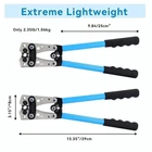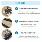 brightfai99 无标题文档 FEATURES: 【Lightweight】 The use of high-strength aluminum alloy handle, significantly reducing the weight of the product, the use of more labor-saving. (Approx. 2.35 lbs.) 【Rotatable Crimp Jaw】 Secured by spring-loaded locking pins, available in 6 crimp sizes - 10, 8, 6, 4, 2, 1 AWG - (6mm²/10mm²16mm²/25mm²/35mm²/50mm²). The non-slip rubber coated handle of this tool makes working more comfortable and effortless. 【Efficient】 The non-slip rubber coated handle of this tool makes working more comfortable and effortless. Press the screw, rotate the crimp to the size you need and simply make a good crimp on the cable lug. 【High Reliability】 The jaw is made by EDM wire cutting process for more durability and precision.The crimper body is made of high quality steel die-casting. They are subjected to strict quality inspection process before leaving the factory. 【Package Contents】 1 x HX-50B Crimper, 60 x Sc Ring Lugs. SPECIFICATION: 60Pcs Copper Wire Lugs - Battery Cable Ends - 8 Sizes Terminals AWG, Stud Size and Quantity: SC 6-6 10 Pcs Cable Diameter: 6mm² (10 AWG), Screw Hole Diameter: 6mm(1/4'') SC 6-8 10 Pcs Cable Diameter: 6mm² (10 AWG), Screw Hole Diameter: 8mm(5/16'') SC10-6 10 Pcs Cable Diameter: 10mm² (8 AWG), Screw Hole Diameter: 6mm(1/4'') SC10-8 10 Pcs Cable Diameter: 10mm² (8 AWG), Screw Hole Diameter: 8mm(5/16'') SC16-6 5 Pcs Cable Diameter: 16mm² (6 AWG), Screw Hole Diameter: 6mm(1/4'') SC16-8 5 Pcs Cable Diameter: 16mm² (6 AWG), Screw Hole Diameter: 8mm(5/16'') SC25-6 5 Pcs Cable Diameter: 25mm² (4 AWG), Screw Hole Diameter: 6mm(1/4'') SC25-8 5 Pcs Cable Diameter: 25mm² (4 AWG), Screw Hole Diameter: 8mm(5/16'')