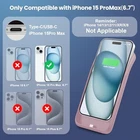 Return Policy Fast Delivery Trusted seller Battery Case for iPhone 15 Pro Max,Powerful 8600mah Ultra-Slim Protective Charging Case,15W Fast Charging Portable Rechargeable Expandable Battery Charger Cover for iPhone 15 Pro Max(6.7inch)-Pink Product Description 【Specially Designed for iPhone 15 Pro Max】This battery case built-in USB-C port is only fit for iPhone 15 Pro max (6.7 Inch).Don't fit for iPhone 15/15 Pro/15 Plus/14 Pro Max/13 Pro Max and other models. ①NOT support wireless charging. ②ONLY compatible with wireless Bluetooth headphones. ③Please use your original iPhone cable to fully charger the battery case when you first receive. 【Powerful 8600mAh Charging Life】With built-in 8600mAh polymer lithium battery, providing extended standby time for your phone,make your phone alive a whole day. Battery pack can be taken on board the plane. Perfect for daily heavy user, business trip or travel. 【Charging Safety and Protection 2 in 1】Our durable iPhone 15 Pro Max case charger is equipped with raised bezels and tempered glass screen protector offer full front and surface protection that avoid drops,impacts,and daily wear. Certificated UL,CE,FCC,RoHS and Internal upgrade chips protect your phone from over-heating, short-circuiting and over-charging. 【Easy to Use & LED Indicator】Bend the soft rubber at the top of the extended battery and push the phone into the bottom of the charger case. The charging battery case has a built-in upgrade button with more responsive commands so you can easily switch the case on and off. Press the power button on the phone's battery case for 3 seconds to start and turn off charging your iPhone. Press the power button to check the battery level, the LED indicator light lets you know the battery level (25%-50%-75%-100%). 【What You Will Get】8600mAh Battery Case for iPhone 15 Pro Max,Tempered Glass Screen Protector x1,Owner's Manual x1.also we provide 24 Months after-Sale Technical Support, 30 days no-hassle return or refund and 24H customer service ensure that you will enjoy our products for a long time. Shipping Returns Payment Shipping Shipping is FREE to all addresses other than APO/PO boxes in the lower 48 states. All our stock ships from US-based warehouses. Shipped via USPS or UPS (depending on location and package weight) Unless stated otherwise, all orders will ship within 24-72 hours of your payment being processed. Check our feedback to see the great reviews of FAST shipping we offer. Returns Seller does not accept returns Payment We currently accept payment via eBay managed payments only. Once payment is cleared, we will dispatch your shipment within 1-3 business days. Please refer to the "Shipping" tab for more information regarding shipping speed to your destination.