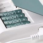 8 separate charging channels make it possible to charge 1-8 rechargeable batteries at the same time, and to mix AA and AAA batteries . This battery charger can also be used as practical storage for your batteries when you are not using them. When batteries are fully charged, this battery charger switches to stand-by charging so that you can store your batteries in the charger if not using immediately. The charging time varies depending on your batteries. IKEA recommend LADDA rechargeable batteries. Special waste handling may be required. Please contact your local authorities for more information. This product bears the CE mark. Frequent user of traditional batteries? Reduce costs and waste by switching to rechargeable. This charger shuts off when the batteries are fully charged – practical storage without the risk of overheating. Packaging : Width: 15 cm Height: 5 cm Length: 19 cm Weight: 0.45 kg Package(s): 1