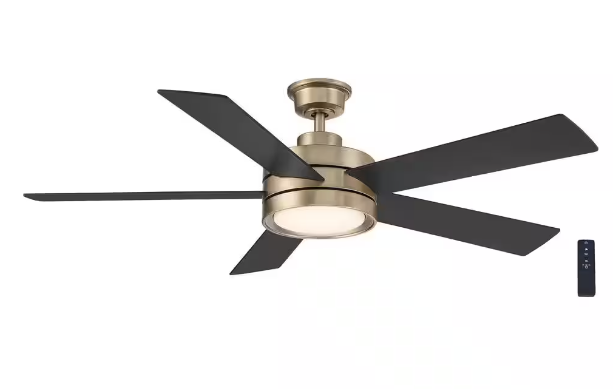 The Baxtan 56 in. ceiling fan will coordinate with a modern decor with its mid-body design. It has a 25-Watt LED light source that will last for years. The hand-held remote will operate the speed and light functions and includes batteries. It also comes with a lifetime motor warranty. 5-reversible matte black/molasses maple blades Integrated LED with frosted glass 3-speed with reverse control Handheld remote control with independent light dimming and speed control Decorative canopy ring and coupling cover to conceal any exposed screws Designed for indoor use only Great room: room size over 20 ft. x 20 ft. with blade span of 56 in. includes 4.5 in. down rod with 3/4 in. Dia Twist-and-lock glass installation method makes it easier to install and conceal hardware