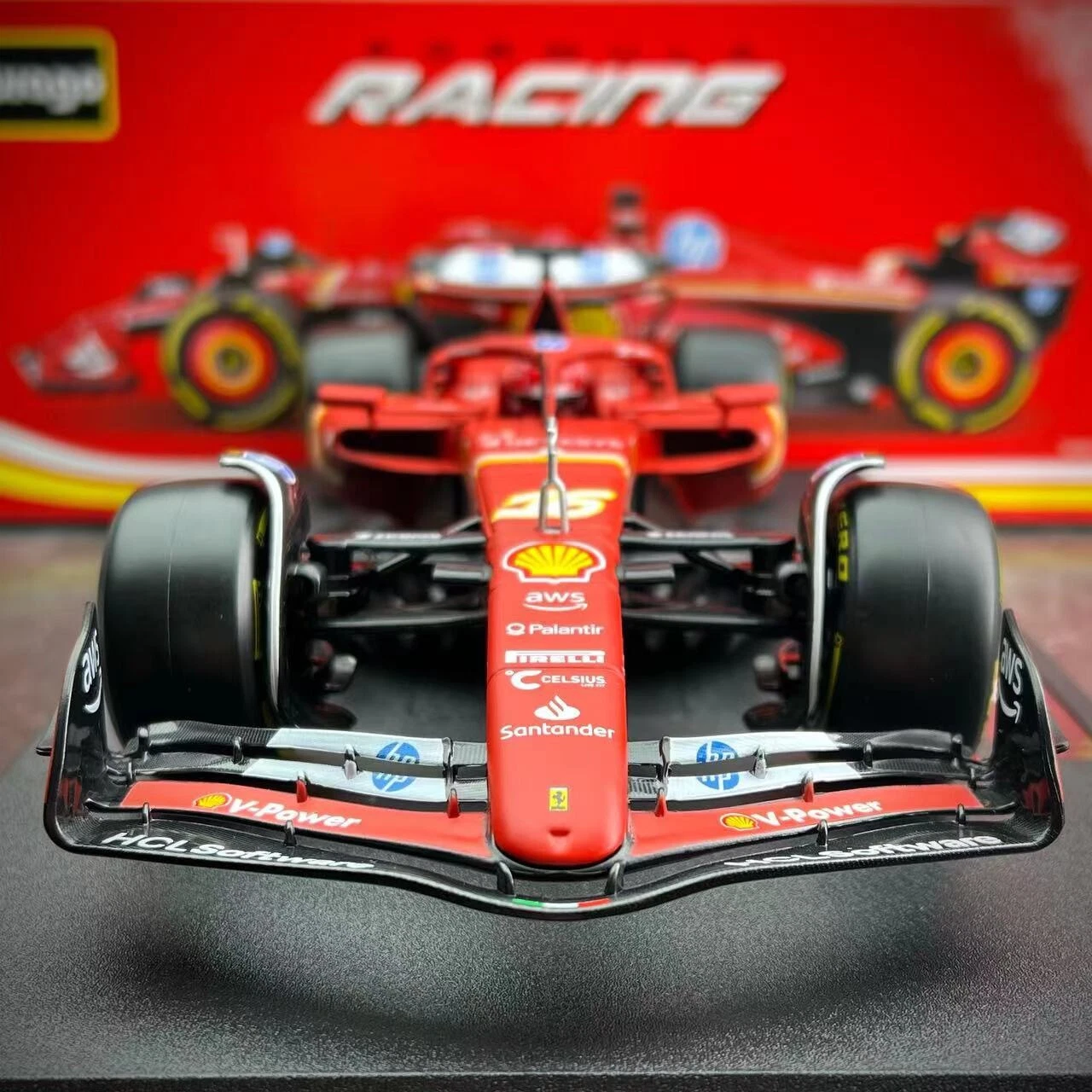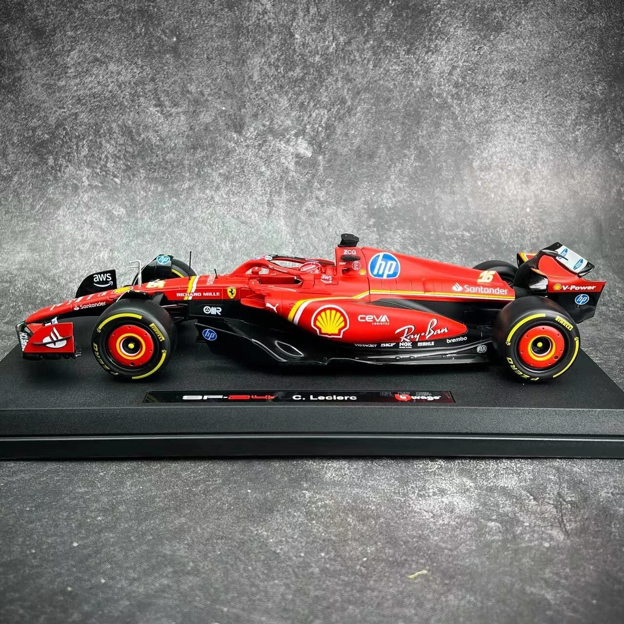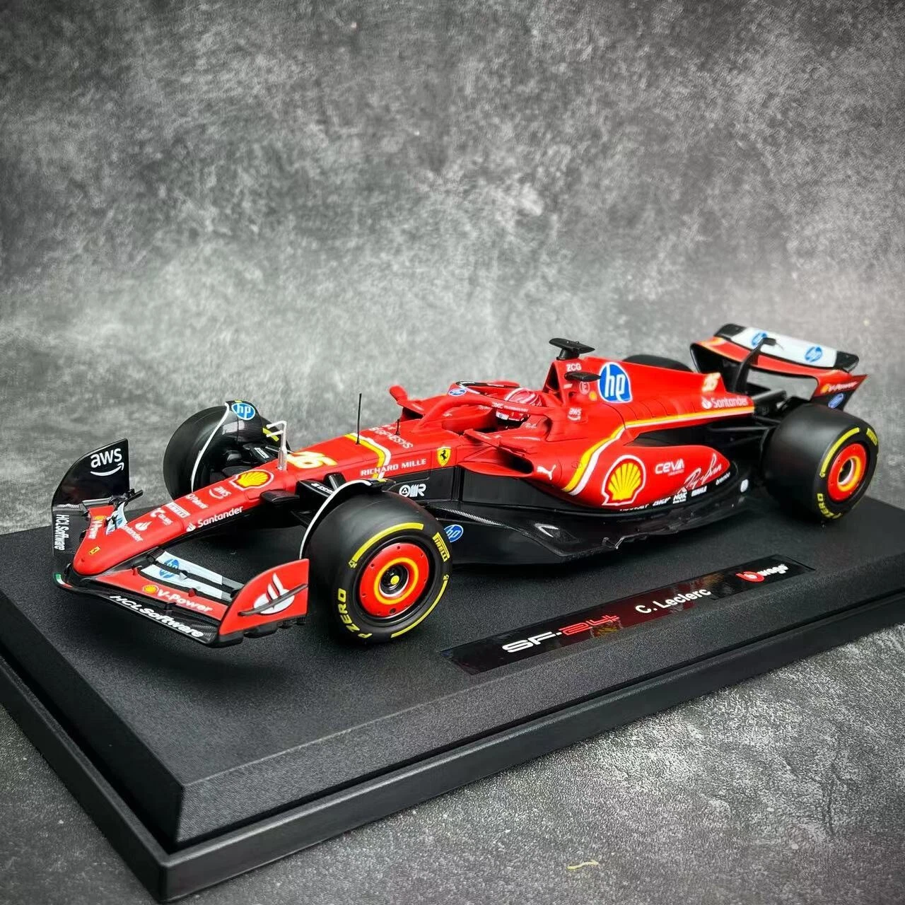 Bburago 1/18 diecast Model of Scuderia Ferrari HP F1 Team Ferrari SF-24 2024 GP Car No.#16 Racer:Charles Leclerc Model Size:About 27cm in length 11.5cm in width,7cm in height (Model size is about 10.6" long, 4.5" wide and 2.75" high) The said replica is in diecast body,fixed on plastic base. Condition : New (Mint in box) **Important Information**: Import duties, taxes and charges are not included in the item price or shipping charges. These charges are the buyer’s responsibility. Please check with your country’s customs office to determine what these additional costs will be prior to bidding/buying.