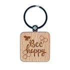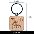 Bee Be Happy Honeycomb Engraved Wood Square Keychain Tag Charm