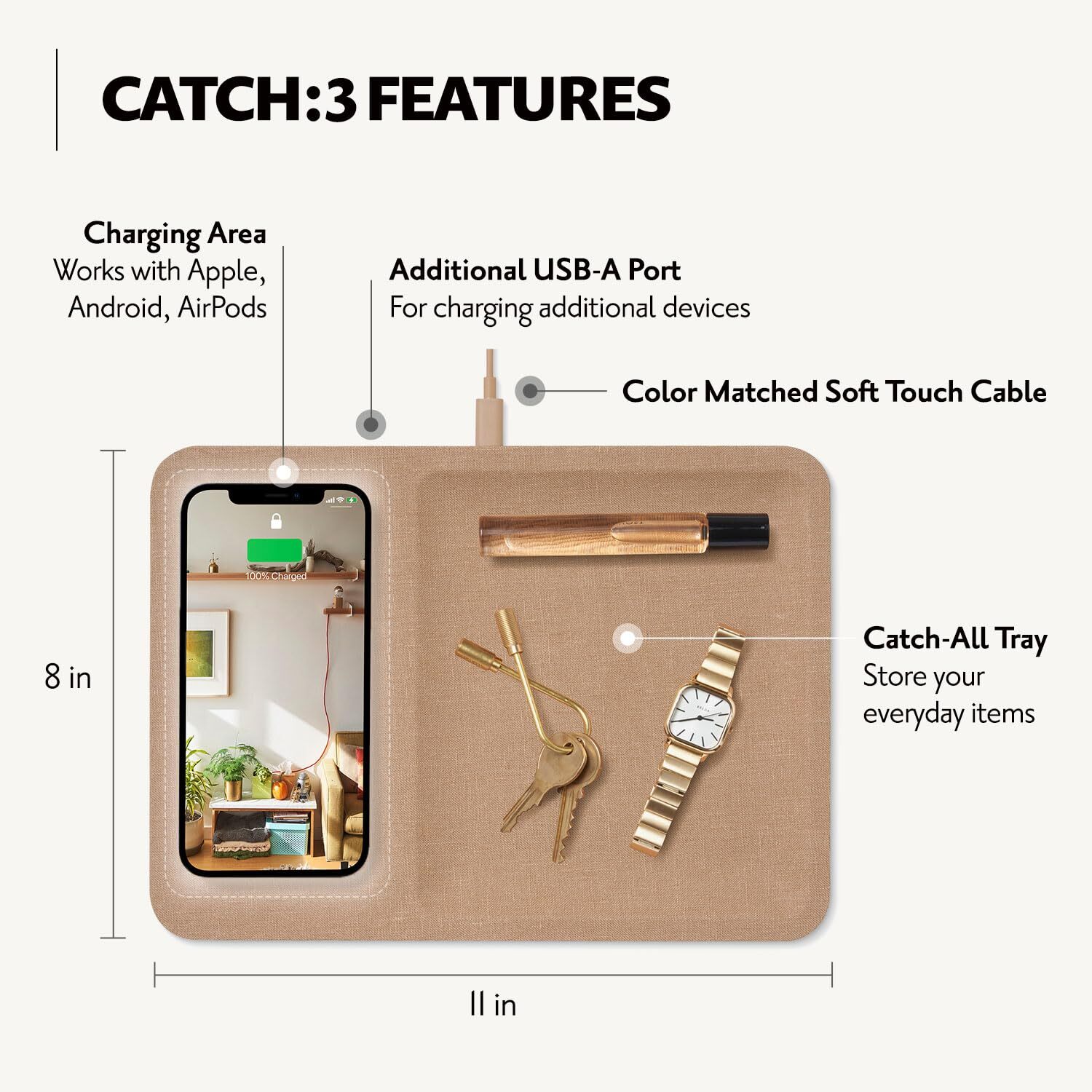 LUXURY DESIGN MEETS HIGH TECH: Custom made to elevate tech to a new design level. We add high-end Belgian Linen, paired with a matte, color-matched frame and cable to our smart wireless charging technology. Proving, once again, that tech can be cutting edge and stylish. CONVENIENT, FAST WIRELESS CHARGING: Without fumbling with cords, place your phone on the wireless charger for up to 10W charging. We designed our wireless chargers with a large 3 coil charging area to make charging alignment effortless. PREMIUM MATERIALS: Our high-quality Belgian Linen is produced using the gold standard of environmental conscious methods. It has the highest rating of product safety and social responsibility (OEKO-Tex Standard 100 certified) and produced in a CO2 neutral manner. SLEEK AND VERSATILE :The valet-style wireless charger provides an all-in-one place to charge your device and keep your accessories organized. It seamlessly blends into your home and lifestyle. The weighted, non-slip construction makes sure it stays where you place it. It is ideal for entryways and bedside tables. PHONE COMPATIBILITY: Wirelessly charge Qi-certified devices (iPhones, AirPods, Android Phones, etc.) from Apple, Samsung, Google, LG and more. The iPhone 12 & 13 models, while compatible, can be more sensitive to the placement on wireless chargers than prior Apple models and may require extra care when aligning the phone and charger.
