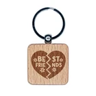 Best Friends Heart Valentine's Day Engraved Wood Square Keychain Tag Charm