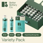Better Battery Co. Variety Pack – AAA & AA & 9V Mixed Batteries – High-Performance Carbon Neutral Batteries with Organizer Box & Built-in Recycling Program – Bulk Combo Set 22x AA, 22x AAA & 2X 9V World's 1st Certified Carbon Neutral Battery: Our carbon neutral alkaline batteries & packaging are fully recyclable; instead of ending up in landfills, every recycled battery is broken down & their components are repurposed creating zero waste High Quality, Reliable Power: Choosing carbon neutral batteries doesn’t mean sacrificing performance, our long-lasting alkaline batteries have been proven to power your devices for comparable time to the leading battery brands Variety Pack Includes Reuseable, Recyclable Organizer Box: Every variety pack comes with a useful storage box that doubles as an organizer to reduce drawer clutter, no more searching three places to find the right battery size; the variety pack includes 22 Double A batteries, 22 Triple A batteries & 2 9 Volt batteries Better for the Planet & Your Pocket: Not only are our batteries sustainable, they’re also better value than other leading brands without compromising performance; when they’re done, simply send them directly to be recycled at no cost in the provided mailer For Everyday Use Or Emergency Situations: From TV remotes & gaming controllers to smoke detectors & flashlights, you can count on Battery Battery Co. to deliver long-lasting and reliable power every time; our batteries are completely leak-resistant so they can be stored for long periods without losing power Shipping We offer FREE shipping on all orders! We ship within Three business days of payment, usually sooner. We use a selection of shipping services such as UPS, FedEx, USPS etc. We only ship to the lower 48 states, no APO/FPO addresses or PO Boxes allowed. Local pickups and combined shipping options are not provided at this time. Return You can return a product for up to 30 days from the date you purchased it. Any product you return must be in the same condition you received it and in the original packaging. Please keep the receipt. Payment We accept payment by any of the following methods: PayPal Please pay as soon as possible after winning an auction, as that will allow us to post your item to you sooner! Feedback Customer satisfaction is very important to us. If you have any problem with your order, please contact us and we will do our best to make you satisfied. Contact Us If you have any queries, please contact us via ebay. We usually respond within 24 hours on weekdays. Please visit our eBay store to check out other items for sale! Thank you for shopping at our store.