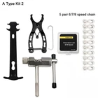 Features: Bike Chain Link Plier: Master link remover or connector tool allows you to effortlessly remove and replace chain link in seconds. No more fiddling around trying to squeeze the tight link together by hand.Simply insert the plier jaws into the master link and squeeze the handles, it’s that simple and easy. Bike Chain Breaker: The Bike Chain Breaker used to remove and install chain pins or other repair work,it can works for all common bicycle chains. Bicycle Chain Connector: Single-use connecting link.Reusable for mountain bike and road bike. Bicycle Chain Wear Checker: It can quickly detect chain abrasion,can decide if you need to change the chain. Specification: Name: Bicycle Repair Tool Kit Suit For: Mountain Bike/Road Bike Notes: 1.Due to the difference between different monitors,the picture may not reflect the actual color of the item. 2.Due to different personal measuring techniques,there might be 1-3cm error of the physical.Thank you!