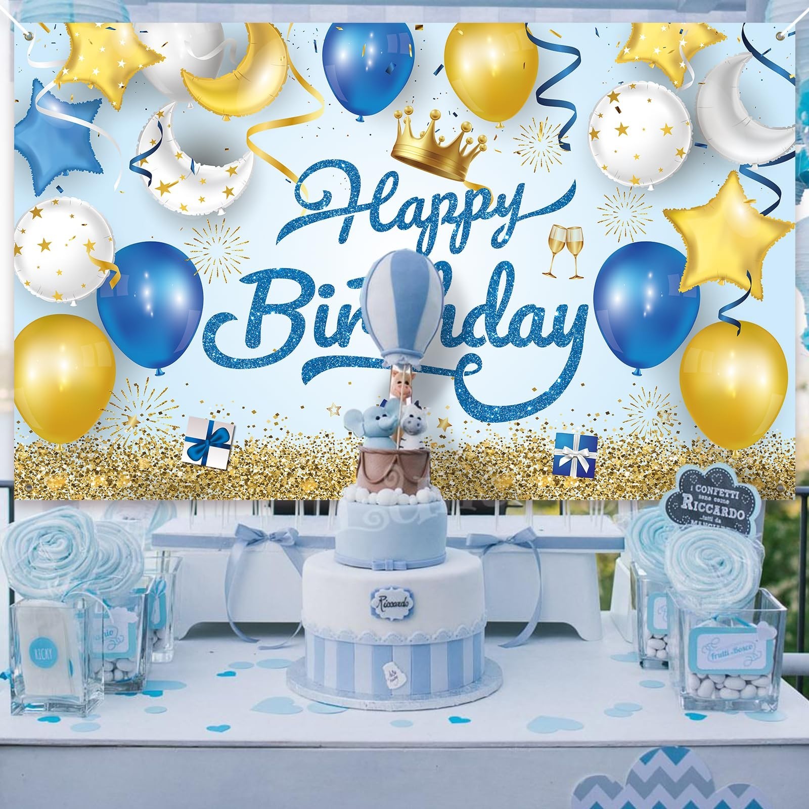 🎉 PartyYaa Happy Birthday Banner – Extra Large Blue, White & Gold Backdrop for Unforgettable Celebrations! 🎉 Make your birthday party shine with this stunning extra-large Happy Birthday banner from PartyYaa. Designed to impress, it’s perfect for photo booths, wall décor, and party backdrops for both men and women. ✨ Product Features: Size: Extra large – ideal for group photos and statement decoration Colors: Elegant blue, white, and gold for a festive look Material: Durable, lightweight fabric – easy to hang and reuse Design: Bold “Happy Birthday” lettering with stylish accents Versatile Use: Great for indoor/outdoor parties, photo zones, and wall displays 📸 Perfect for Photo Booths: Create memorable moments with a professional-looking backdrop that elevates your party photos. 🎁 Great Gift Idea: Surprise your loved ones with a decoration that adds instant charm and celebration spirit. 🛠️ Easy Setup: Pre-punched holes make it simple to hang with string, tape, or hooks.