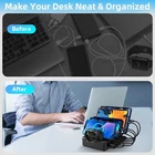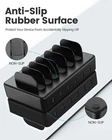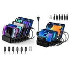 Black Charging Station+Black Charging Station with Watch Holder Product Details Brand: CREATIVE DESIGN Connectivity Technology: Lightning,Usb Connector Type: Micro USB Type B, Lightning Micro USB, USB Type C, 8-Pin, USB Type A Compatible Devices: Smartphones, Tablets, Smartwatches Compatible Phone Models: Iphone Included Components: 3 Lightning Cables, 2 Type-C Cables, 1 Micro USB Cable, 1 Type-A to Type-C Adapter Converter, 1 Charging Station See more Special Feature: Travel, Short Circuit Protection Color: black Input Voltage: 120 Volts Mounting Type: Tabletop Mount Connectivity technologies: Lightning,Usb Special features: Travel, Short Circuit Protection Other display features: Wireless Form Factor: Compact Tabletop Mount with Multiple Slots Color: black Whats in the box: 3 Lightning Cables, 2 Type-C Cables, 1 Micro USB Cable, 1 Type-A to Type-C Adapter Converter, 1 Charging Station Manufacturer: CREATIVE DESIGN Date First Available: November 16, 2022 6 IN 1 Versatile Charging StationOur iPhone charging station comes with 3 lightning cables, 2 type-c cables, 1 micro USB cable, and a Type-A to Type-C Adapter Converter, just saying goodbye to the endless adapters and tangle of cords. And each 2.4A port charges 80% faster than other regular chargers of 2A or less. Less mess, More organizedThe multiple charging station has 6 smart USB ports that put all your devices in one place, simultaneously charge your smartphone, power bank, tablet and other devices, and keep them organized neatly and save more space. Perfect for Big Family. Multiple Safety & ProtectionOur charging station for multiple devices is made of premium flame-retardant ABS material. With short-circuit, overheat and overcharge protection, this apple charging station will make all your devices safer and more efficient to charge. Functional Practical SturdyWith three slots that are 0.75 inches and the remaining three slots that are 1 inch, as well as 1.3-inch high dividers, they are all wide and sturdy enough to conveniently hold your multi-devices. And each of the six slots has a silicone pad to prevent them from slipping out. Suitable for Any OccasionDesigned to be compact in size, measuring 7.08 x 4.33 x 1.37 inches with a 4.92 feet power cord, the multi charger station is easy to carry. Suitable for travel. This phone charging station can be used in your home, hotel, office, school, and more. Ideal Gift to family, friends, and colleagues.