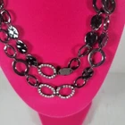 Black Metallic Oval Multistranded Necklace measures: 18" short strand 20" long strand 3" extension lobster clasp closure keywords: classic, casual, 90s, Y2K, grunge, steampunk, whimsygoth, goth, party, work, office, business casual, feminine, coquette, metallic 20241013-020
