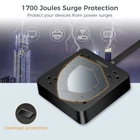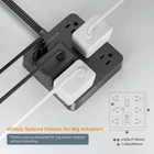 Extension Cord with USB Simple housing and compact size ideal for tabletop or bedside in your for home and office, meet multiple devices working simultaneously, most device and home appliance can be connected. 3 high-powered smart USB ports would assign ideal current intelligently for your smart phone or tablets. Wide Spaced Outlets: widely spaced ac outlets are separated enough to fit big plugs without blocking each other, six 3-prong outlets and 3USB sockets for a totalof 9 plugs at a time. saving your space and making your desktop organized; Multiple Security Protection: This power outlet strip built-in Circuit Breaker safeguards your expensive computers, TV and all other electronics from overload,voltage fluctuations. the reliable overload switch will trip off automatically to protect your devices and your home when the power overload. Compact Power Strip Compact size and stylish outlook, providing a wide range of power distribution. most devices and home appliances can be connected. comes all the features you need as a portable power outlet strip Specification: Power Rating: 1625W (125V~ 13A); USB Ports: 5V 2.4A each port, 3A 15W in Total; Dimensions: 4.7*4.7*1.1 in; 9 in 1 Black Power Strip: This flat power strip 5ft could turn 1 socket into 6 AC outlets and 3 USB ports, can charge 9 devices simultaneously without blocking, keep your desktop organized; You can use it in any indoor place such as home, office and dorm room Flat Extension Cord: With only 0.35 in ultra thin flat head design, flat power strip can easily fit in tight spots and hide behind sofa, bed, nightstand or other furniture, sitting flush against the wall; 45° right angle design create an extra space for other plug below without blocking USB C Wall Charger: Dual USB A ports features 2.4A, the USB C port features 3A; 2 types of USB ports can detect charged devices and deliver optimal charging speed, giving you more charging options; idea for USB devices like cell phone, tablet, earphone, etc 1700J Surge Protector Outlet: Equipped with overload protection, short-circuit protection, over-current protection, and etc; Reliable on/ off switch can automatically shut off and protect your expensive electronics, providing you with a safe and reliable charging environment Suitable for Any Occasions: Our convenient multiple outlet power hub is suitable for the office, bedroom, living room, and college dorm room. 4 rubber feet at the bottom efficiently keeps it from slipping and sliding