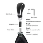 FITMENT: Fit for most of the manual transmission, part of the automatic transmission Come with 3 plastic hoses (8mm,10mm,12mm) Direct replacement for original knob, no modification is required Material: Leather+Metal Size: 105cm x 28cm Color: Black INSTALL: Remove the original one The top of this row of gears to remove the bottom of the metal Take plastic sleeve for the shift bar size The rubber sleeve into the gear bar inside The shift head directly into the gear lever PACKAGE INCLUDED: 1 x Manual Shift Knob 3 x Adapters(8mm,10mm,12mm) 4 x Screws 1 x Spanner Please allow 0.5-1 inch difference due to manual measurement.(1inch=2.54cm) There are no instructions included in this kit.Professional Installation Is Highly Recommended! Please compare the gear shift head with your original one before purchasing!