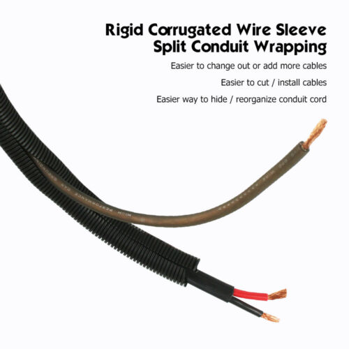 Features: Split for easy installation and cable access Manufacturer Warranty: 3 years MPN: PET wire wrap harness cove Condition: New Features 5: Corrugated Insulated Pipe Universal Cover Flex Item must be returned within: 60 Days Features 4: finished appearance by concealing unsightly wires Bearing pressure: ordinary Feature 2: split loom is split and easy to put wires in Feature 5: used to wrap wires,and make cables wires neat and orderly Application: Used to industry,automotive,home & office etc Feature 1: flex material,slit that runs down length of this cable hider. Restocking Fee: No Type: Conduit Wire Loom Model: Split Wire Loom Conduit Brand: morethink - Spliit Wire Loom Features 3: Resistant to chemicals, cuts, etc UPC: 791751060749 Item Length: choose the size you want Material: Polypropylene Product structure: oth inside and outside are wavy flexibility Country/Region of Manufacture: United States Feature 3: thick enough to provide full protection for the wires Cutting fluid resistance: very good Return shipping will be paid by: Working Temperature: 105F - 220F Feature 4: resistance to abrasion & harmful chemicals corrosion. Item Diameter: choose the size you want Refund will be given as: Money Back Features 2: Protects cables from automotive fluids, friction and punctures Flame Retardant Grade: FV-2 All returns accepted: Returns Accepted Short Term Use Temperature: 105F - 290F Oil resistance: Very good Color: Black