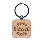 Blessed Leaf and Berries Engraved Wood Square Keychain Tag Charm