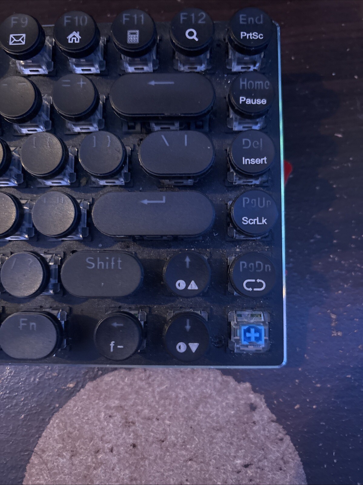 The Mechanical Keyboard Blue Switches is a black portable keyboard with QWERTY layout and USB-C connectivity. It features illuminated keys and is plug & play compatible, providing a responsive typing experience.