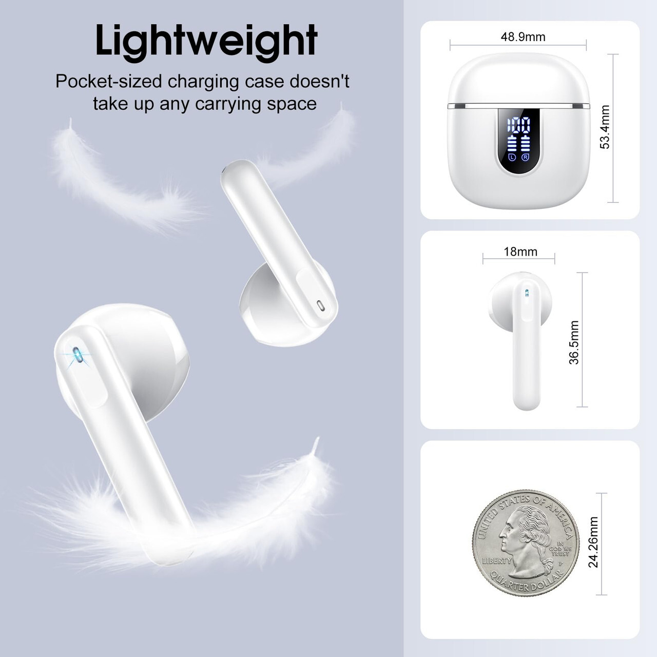 Please Note: Most orders are handled within 2-3 business days. Our stated 5 business days handling time applies only in rare circumstances. Our stated free shipping cost for large/bulky items (large furniture, appliances, electronics, etc.) is only applicable for orders with shipping addresses within mainland USA (Upper 48 States). Customers located outside of the mainland USA region (Guam, Hawaii, US Virgin Island, Alaska, Puerto Rico, etc.) must contact us to make shipping arrangement before submitting an order for any such large bulky items. Failure to adhere to the above requirement for large/bulky items, may result in automatic order cancellation. Brand: Cillso Color: White Features: 2025 Upgraded Bluetooth 5.4 and Auto Pairing: The H97 wireless earbuds feature advanced Bluetooth 5.4 chips and high-sensitivity antenna design, providing faster and more stable signal transmission for low latency and uninterrupted audio. With the built-in magnetic Hall effect switch, the Bluetooth earbuds automatically pair with your device when the charging case is opened after the initial connection. Innovative reception technology ensures that both earbuds receive the signal simultaneously Immersive Sound and Clear Calls: The Cillso wireless headphones feature a 14.2mm diaphragm driver, combined with AAC/SBC audio encoding and a unique stereo design, delivering an immersive sound experience. The bass is more powerful, and the mids are fuller and more textured, allowing you to enjoy every detail of the music. Equipped with ENC noise-canceling technology, these Bluetooth headphones effectively filter out environmental noise, ensuring clear calls and music 40 Hours Playtime and LED Display: These wireless earphones provide up to 8 hours of playback on a single charge, and with the charging case, you get an additional 32 hours of playtime. The charging case features a dual LED display that shows the real-time battery percentage. With Type-C fast charging technology, the case can be fully charged in just 1.5 hours (Note: Please fully charge the Bluetooth earphones before first use. When used for calls, the earbuds provide up to 4 hours of use) Ergonomic Design and IP7 Waterproof: The wireless Bluetooth earbuds feature an ergonomic design that ensures a secure fit and long-lasting comfort. Each earbud weighs just 3.5 grams, and the charging case weighs only 32 grams, making them lightweight and easy to carry. The case also features a high-quality magnetic closure to prevent the noise cancelling earbuds from accidentally falling out. With IP7 nano-coating technology, they are protected from daily splashes, sweat, and rain Smart Touch Control and Wide Compatibility: The running earphones feature a sensitive touch sensor, allowing you to easily control play/pause, volume, song switching, calls, and the voice assistant with a light tap. They are compatible with most Bluetooth devices, including smartphones, tablets, and laptops. Whether you're using Android 4.4 or iOS 8.0 and above, or Bluetooth 4.0 and above, the in ear headphones connect effortlessly, delivering a high-quality audio experience Notice: To ensure the best charging experience, please use the standard charger (5V/1A; 5V/2A) to charge the case. If you encounter charging issues, switch to a certified standard charger Listing and template services provided by inkFrog Please Note: Most orders are handled within 2-3 business days. Our stated 5 business days handling time applies only in rare circumstances. Our stated free shipping cost for large/bulky items (large furniture, appliances, electronics, etc.) is only applicable for orders with shipping addresses within mainland USA (Upper 48 States). Customers located outside of the mainland USA region (Guam, Hawaii, US Virgin Island, Alaska, Puerto Rico, etc.) must contact us to make shipping arrangement before submitting an order for any such large bulky items. Failure to adhere to the above requirement for large/bulky items, may result in automatic order cancellation.