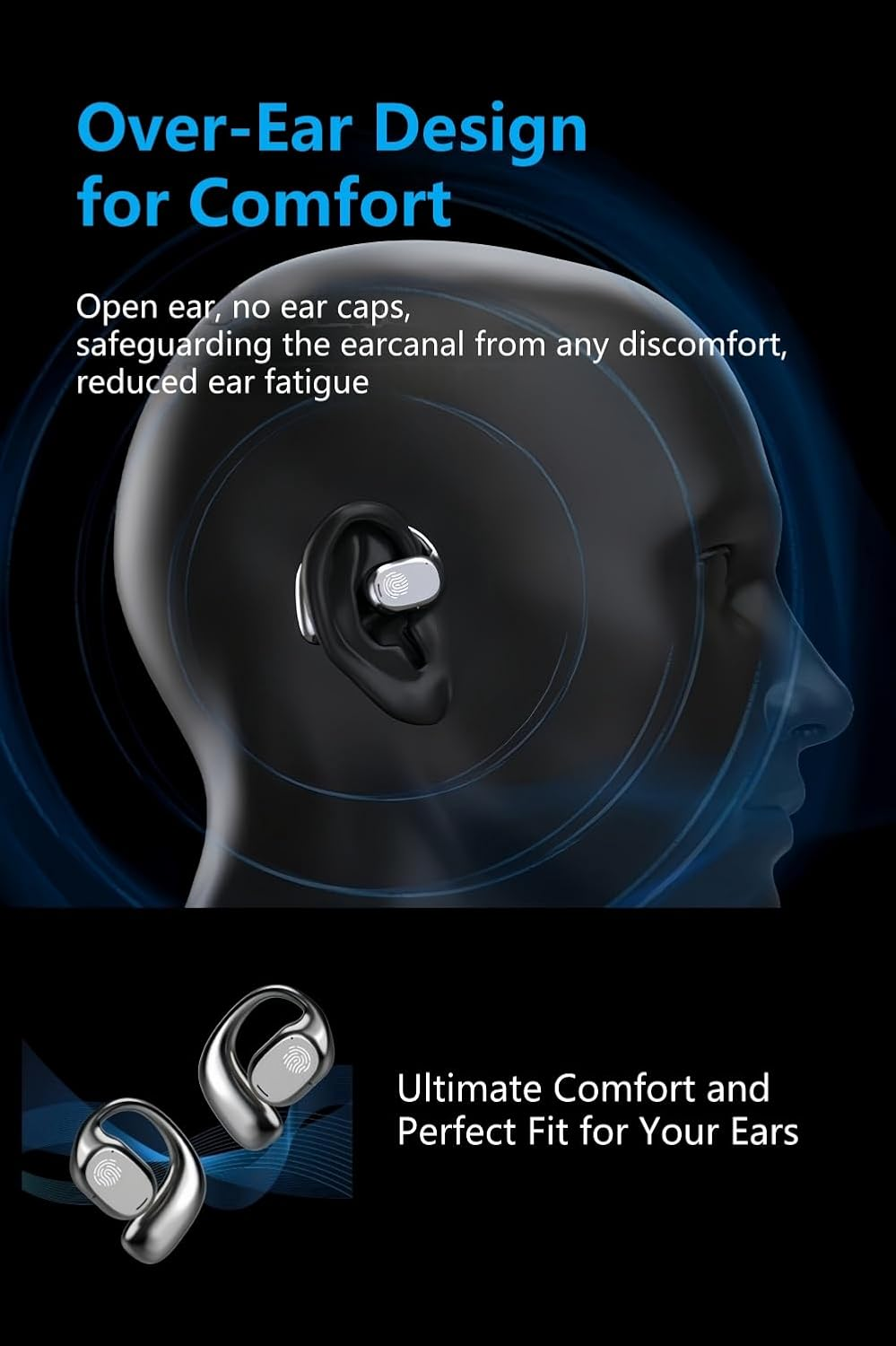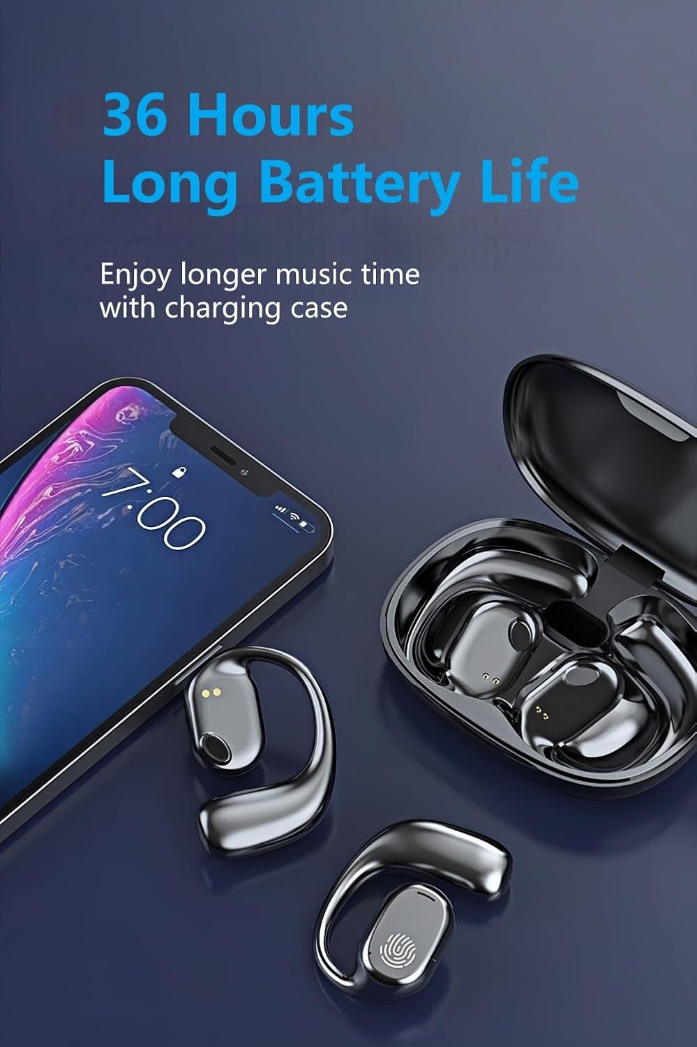 HiFi Sound with Enhanced Clarity: These open ear earbuds feature 14.2mm Precision Hi-Fi Drivers and dynamic EQ technology, delivering rich, immersive audio with deep bass and crisp highs. Enjoy your favorite music with Advanced Directed Audio Technology that minimizes sound leakage for a more personal listening experience. 36H Battery & Quick Charge: Designed for active use, GT27 bluetooth earbuds offer up to 10 hours per charge, with a compact charging case extending total playtime to 36 hours. The LED display shows battery status at a glance, and a quick 5-minute charge adds an extra hour of playtime, so you’re always ready to enjoy your music on the go All-Day Comfort with Open-Ear Design: Enjoy vibration-free, crystal-clear sound with GT27 open-ear headphones. Soft, adjustable ear hooks fit all ear shapes and sit comfortably with glasses, making them perfect for all-day wear and keeping you aware of your surroundings while you enjoy your favorite music Stable, Fast Connection & Crystal-Clear Calls: With Bluetooth 5.3, these open-ear wireless earbuds connect instantly for a fast and reliable connection every time. ENC noise-canceling technology ensures crystal-clear calls, even in noisy environments—perfect for workouts, commutes, and work calls. Enjoy high-fidelity sound and unparalleled comfort, making these earbuds ideal for music, gaming, and conversations. Intuitive Touch Control & IPX5 Waterproof: Effortlessly adjust volume, skip tracks, and take calls with easy touch controls. With voice command support and IPX5 waterproofing, these wireless headphones are perfect for all your workouts—whether you’re running, lifting weights, jogging, cycling, or hiking. You can trust these over ear earbuds to stay in place, keeping your music by your side, rain or shine Product Description