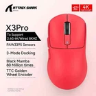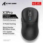 Product Parameters: Model: X3/X3pro Connection: Wired/2.4G/BT5.2 Image Sensors: PixArt PAW3395 Kailh Switch: Black Mamba 80 million times Accelerated Speed: 50G Movement Speed: 650IPS X3 Return Rate: 125-1000Hz X3Pro Return Rate: Wired Mode 8KHz/Wiredless Mode 4KHz DPI: 800-26000dpi X3 Weight: 49g±3g X3Pro Weight: 59g±3g Battery capacity: 300mAh Working Life: 65H Size: 118.5x61x39.7mm Macro Drivers: One app for total control. dpi adjustments, payback rates,custom macros,A range of configurations such as keystrokes and programming can be set and saved in the driver. Tri-Mode Connection: Tri-mode connection(wired/2.4G/BT) wireless status, BT/2.4G can be connected to two devices respectively Packaging List 1× Mouse 1× Type-C Charging Cord 1× Receiver 1× Instruction Manual 1× Anti-skid sticker
