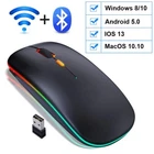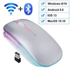 Wireless Mouse Bluetooth RGB Rechargeable Mouse Wireless Computer Silent Mause LED Backlit Ergonomic Gaming Mouse For Laptop PC Note 1.Bluetooth Mode System Requirement: (1) iPadOS 13 or later (2) iOS 13 or later (3) Windows 8/ 10 or later (4)Mac OS X 10.10 or later (5) Android 5.0 or later. 2.There are two modes: Bluetooth + wireless dual mode and wireless mode, please select the correct option 3.When the mouse cursor can't locate accurate, the mouse need to be charged. 4.When charging, the scroll wheel is blue light. 1.New Upgraded:Unique charging technology,built-in lithium battery 2.Silent Design:The left and right click are both silence, no sound when you click 3.3 kinds DPI:adjustableprovides precise positioning Item Name:2.4G Wireless Mouse& Bluetooth 5.0mouse Buttons: 4 buttons The Max DPI:1600 DPI Ajustable DPI Switch: 800 /1200 /1600DPI WiFi Range: 10M Battery: Rechargeable Charging Cable Length: About 35-45cm Switch Life: 10 Million Times Size: 112*57*25mm Support System: Windows /Mac/Android / iPadOS 1 x 2.4G Wireless Mouse 1 x USB Receiver 1 x Charging Cable